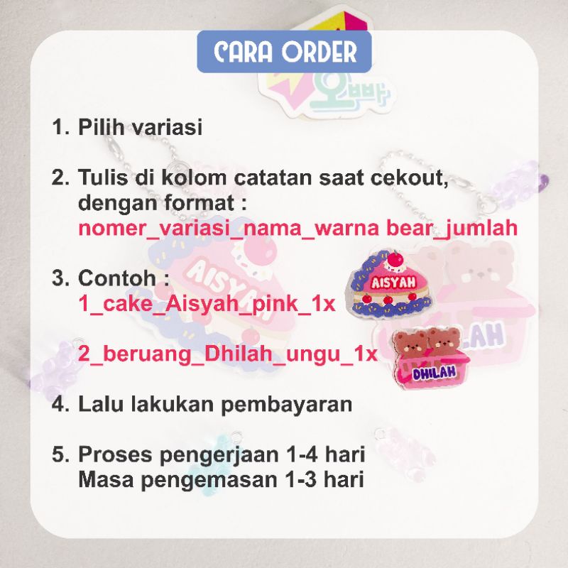 GANCI Custom Nama + Custom Warna BEAR CHARM - Ganci Acrylic custom