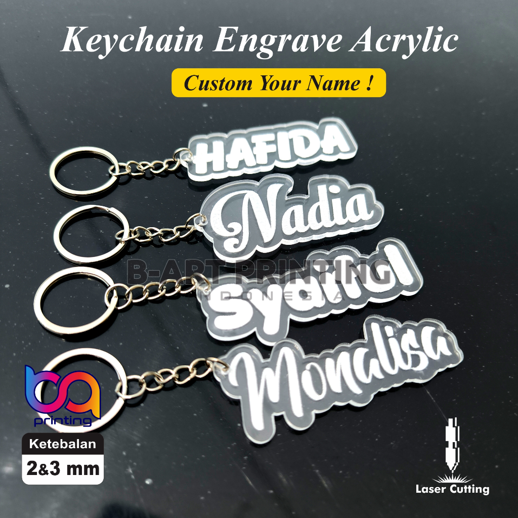 GANCI GRAFIR 3MM GANTUNGAN KUNCI GRAFIR AKRILIK UKIR Gantungan Kunci Nama / Logo Akrilik Custom Ukir Laser Cut