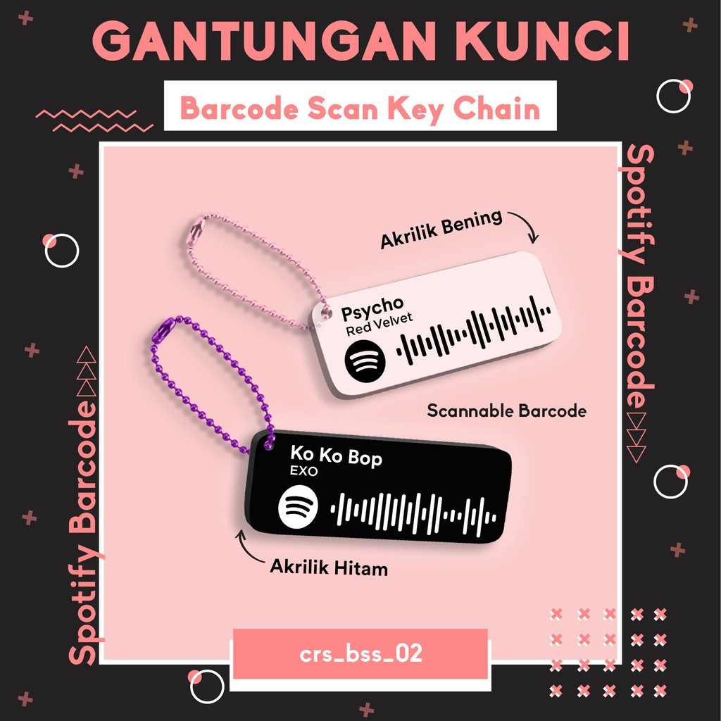 GANTUNGAN KUNCI AKRILIK CUSTOM BARCODE SPOTIFY MUSIC BEBAS REQUEST LAGU & CHAIN