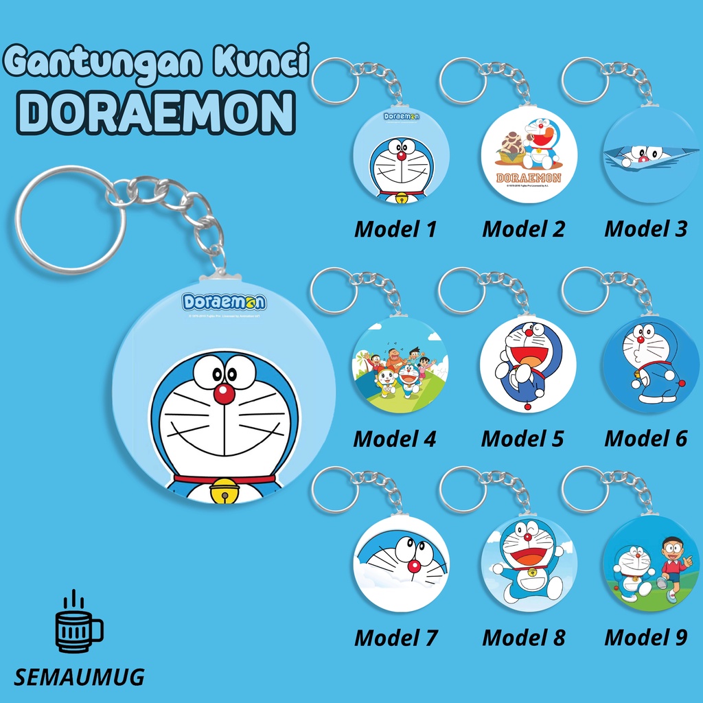 GANTUNGAN KUNCI DORAEMON KADO GANCI BULAT KARTUN LUCU PRINT CUSTOM SEMAUMUG