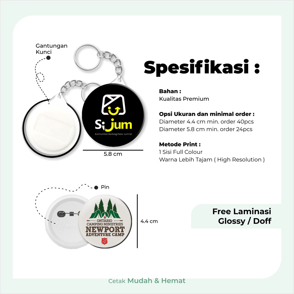 GANTUNGAN KUNCI/PIN BULAT CUSTOM 44mm *58mm (AnugerahPrintshop)
