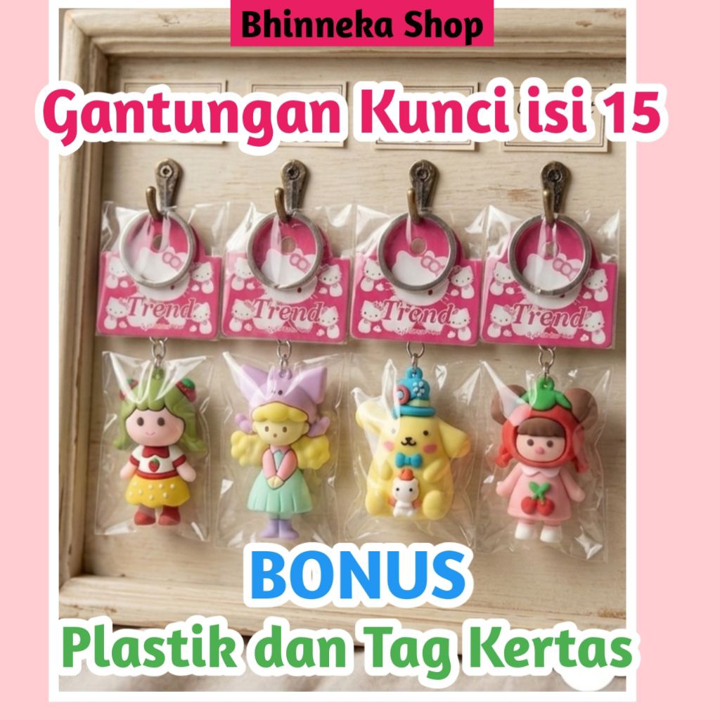 (15pcs + Plastik + Tag kertas) Gantungan kunci karakter lucu / Keychain / Souvenir