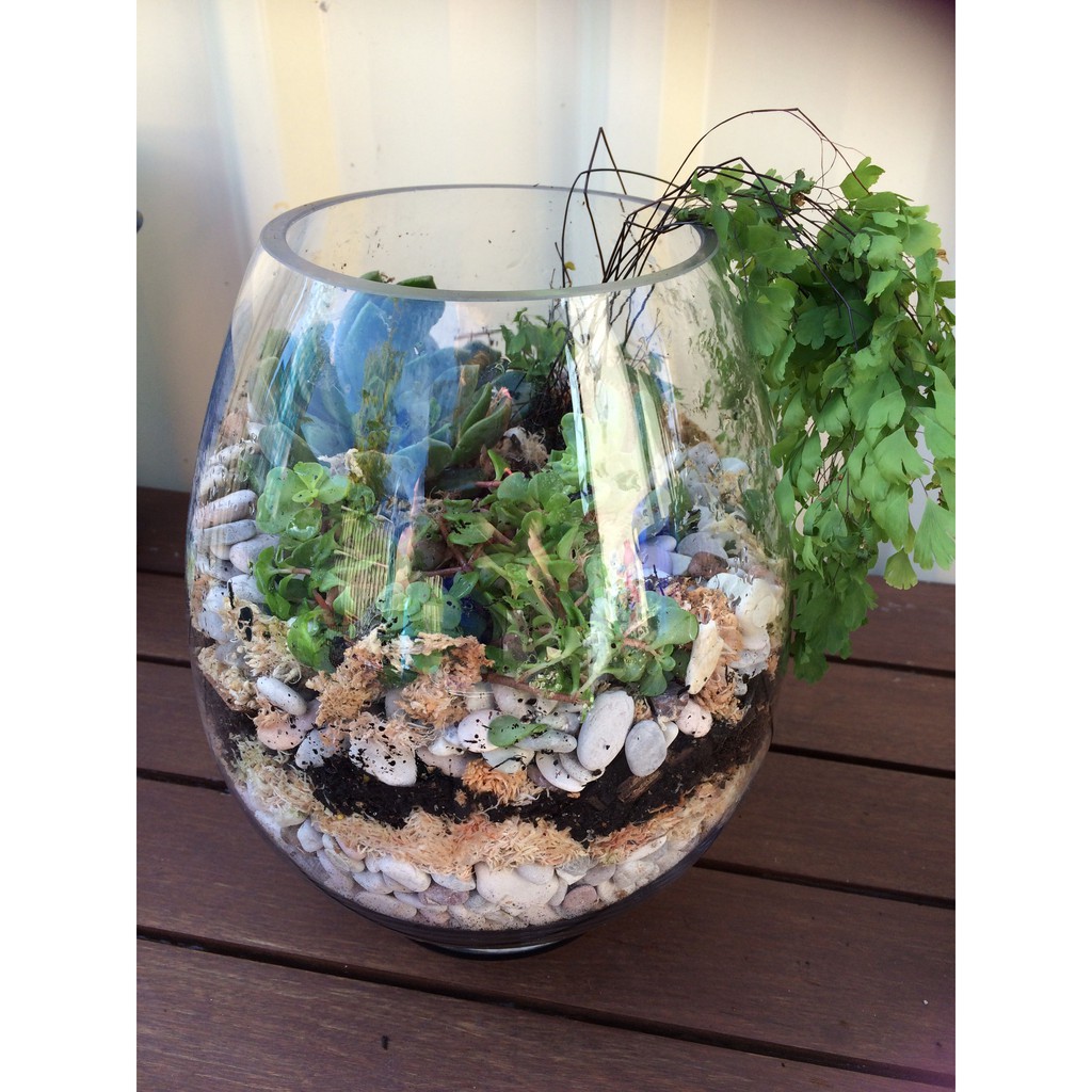 GARANSI! Aquarium Mini Ikan Cupang Ukuran 475ml / Akuarium Kecil Kaca Hias Bulat Aquascape