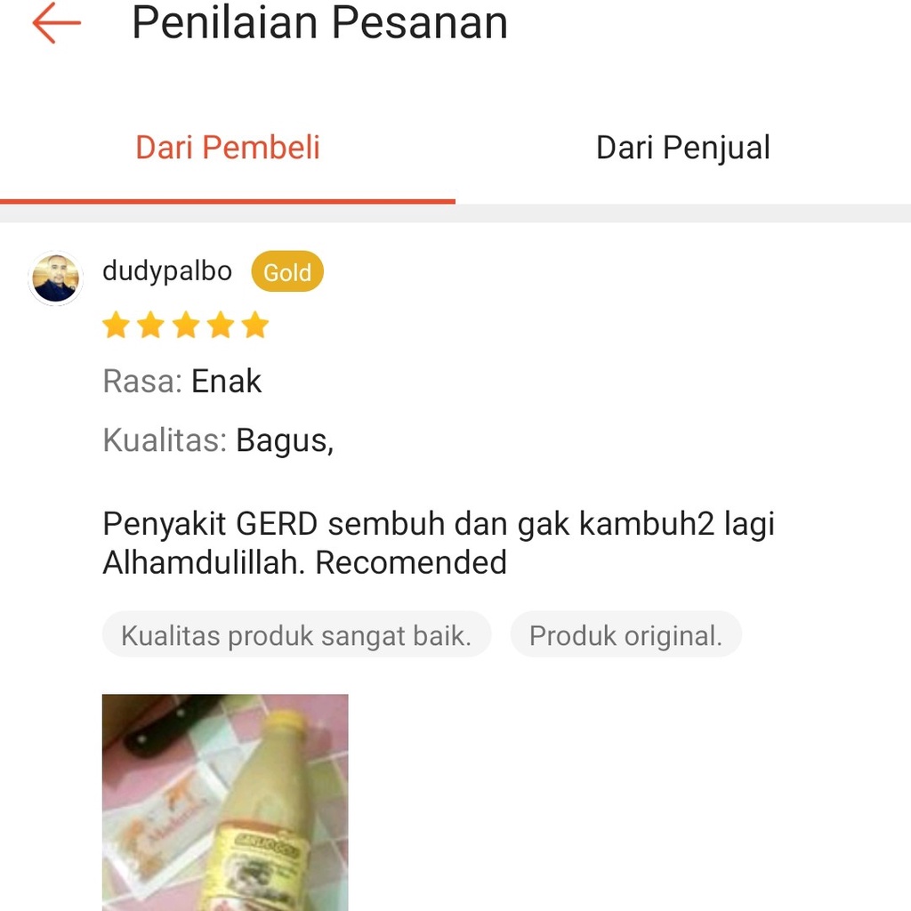 PAKET 2 BOTOL Jus Bawang Putih Tunggal Madu Hutan Jahe Merah Cuka Apel Sari Lemon