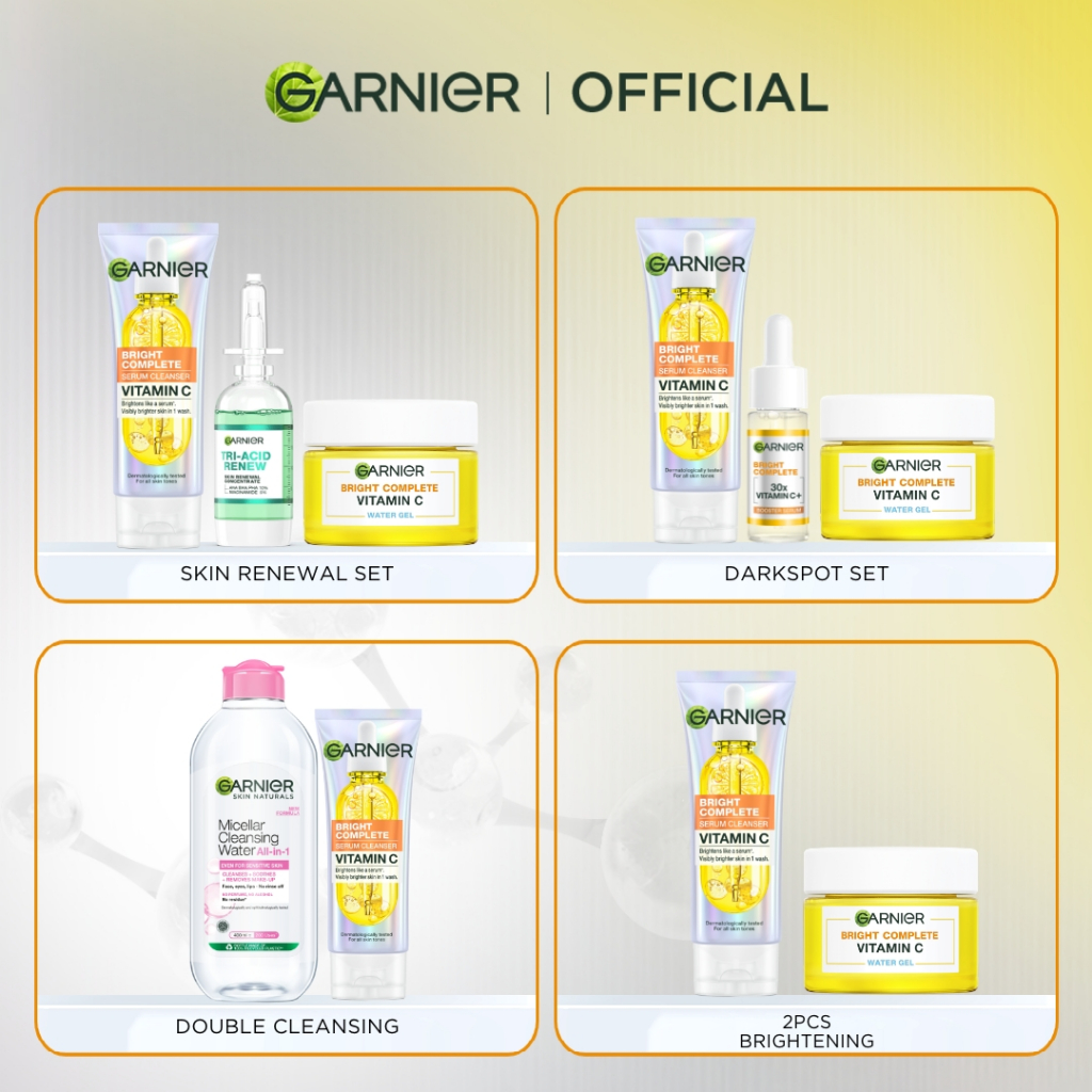 GARNIER Facial Wash Bright Complete Vitamin C Serum Cleanser 100ml Paket Skincare Pembersih Wajah Mencerahkan Seperti Serum Wash Sabun Cuci Muka Sabun Muka Glowing dan Memutihkan Moisturizer Sunscreen Face Wash