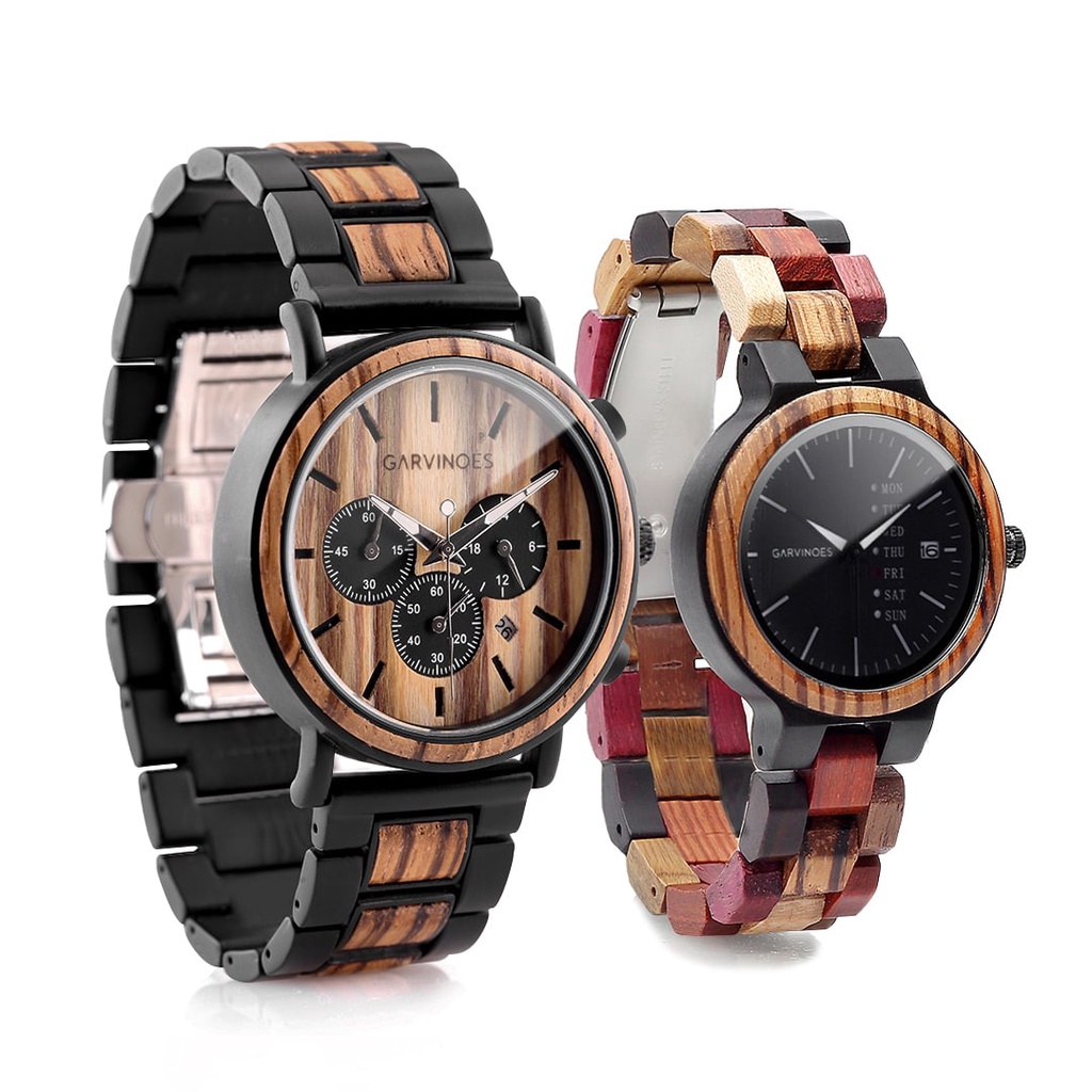 GARVINOES Arfak Series & Merian Day-Date Jam Tangan Kayu Couple/Pria/Wanita 43 mm 38 mm