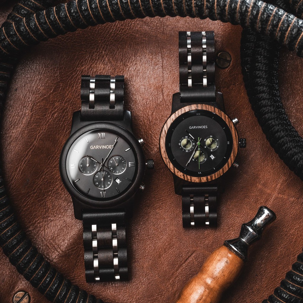GARVINOES Eboni Series & Cassia Green Eyes Jam Tangan Kayu Couple/Pria/Wanita 43 & 40 mm
