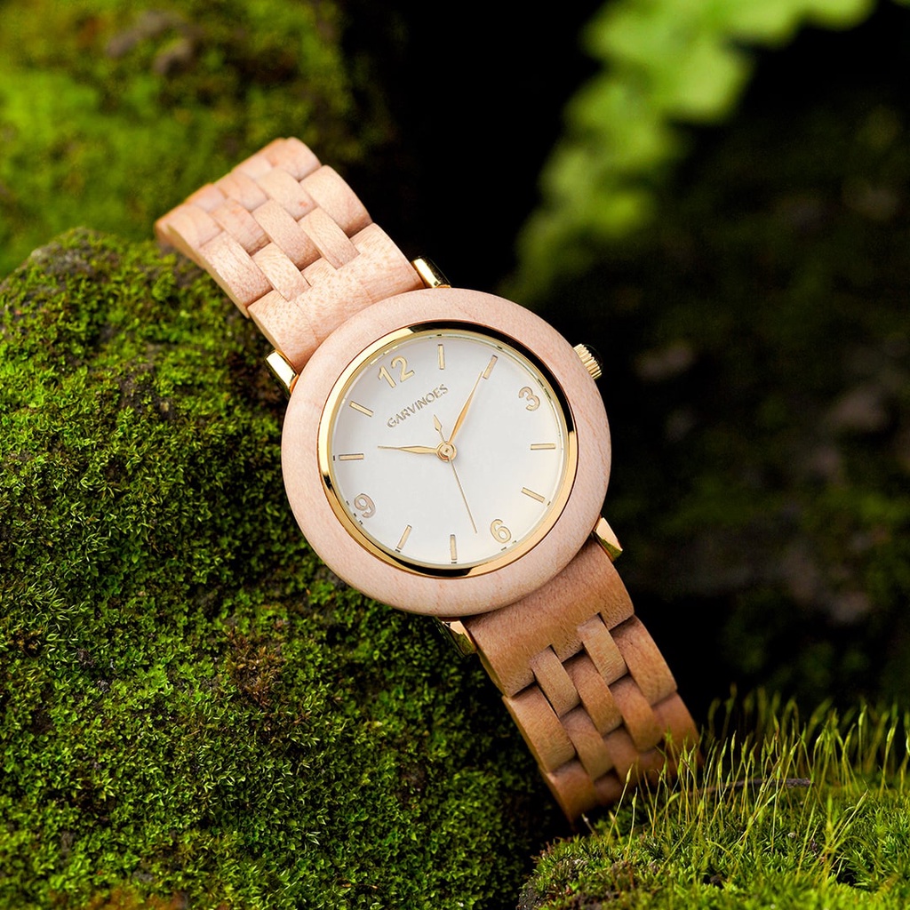 GARVINOES Vier White Chrono & Viena Pear Flower White Jam Tangan Kayu Couple/Pria/Wanita 44 mm 34 mm
