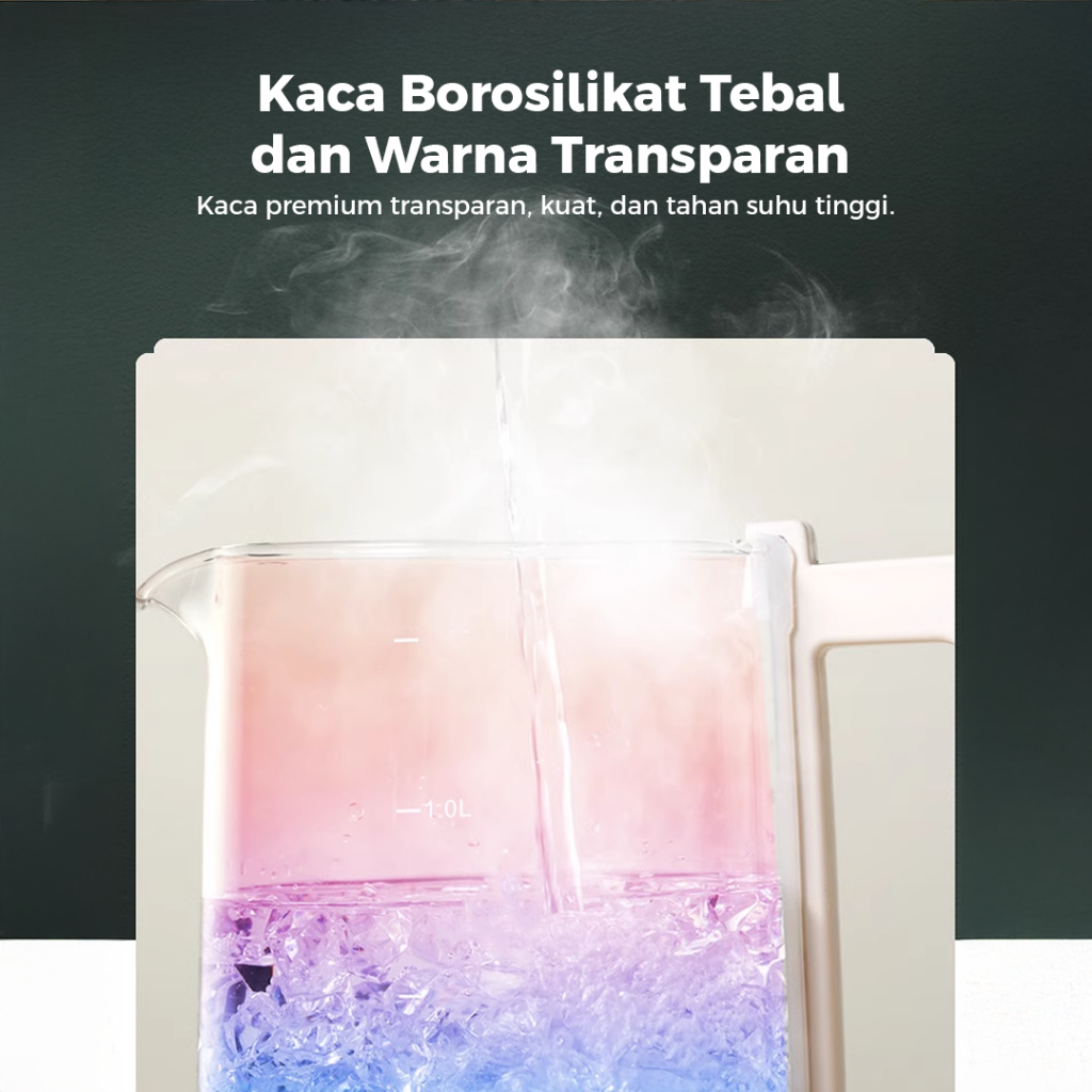 GASCOMP Electric Kettle EKK-01 GASCOMP Teko Listrik Kaca Food-Grade 1.2L, Bahan Kaca Low Watt 600W, Aman untuk Susu Bayi, Anti Bau & Karat, Teko Listrik Pembuat Teh