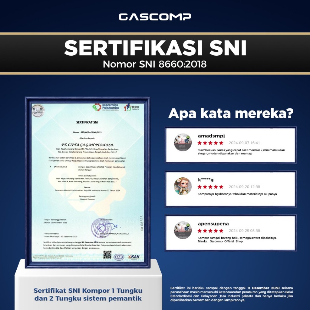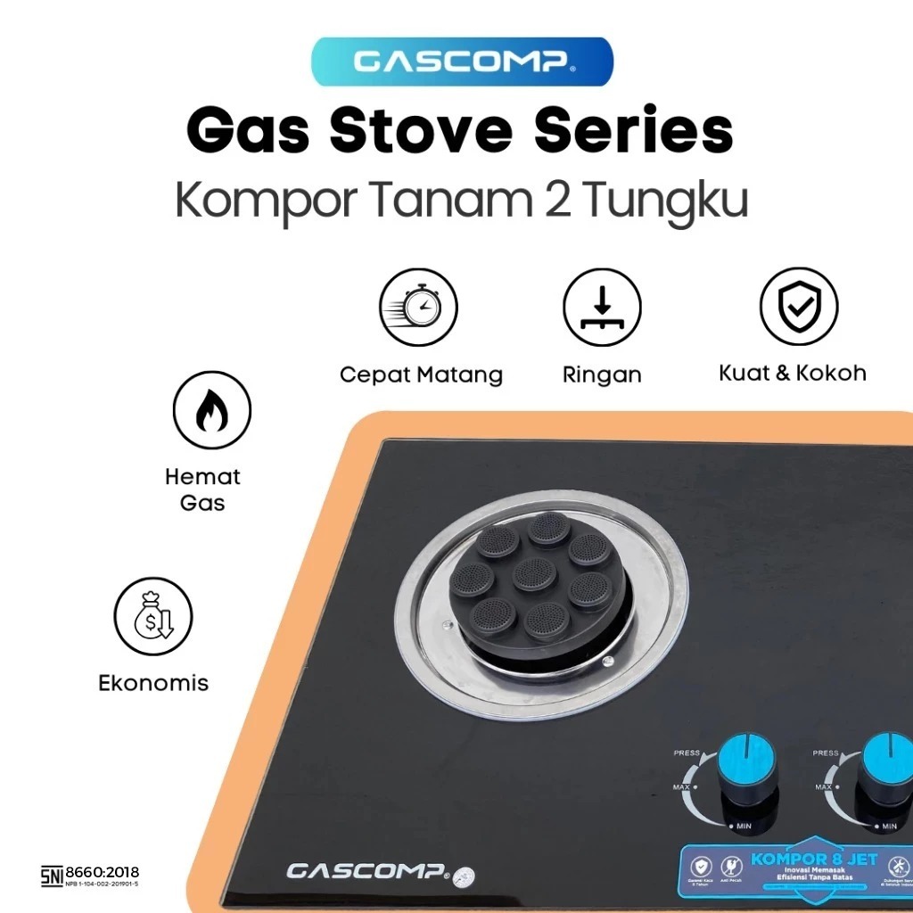 GASCOMP Kompor Tanam Kaca 8 JET Kompor Gas 2 Tungku 8 JET Spesial Kompor Tanam Burner Lebih Hemat Gas Kompor Gascomp Kompor Tanam Kaca 2 tungku