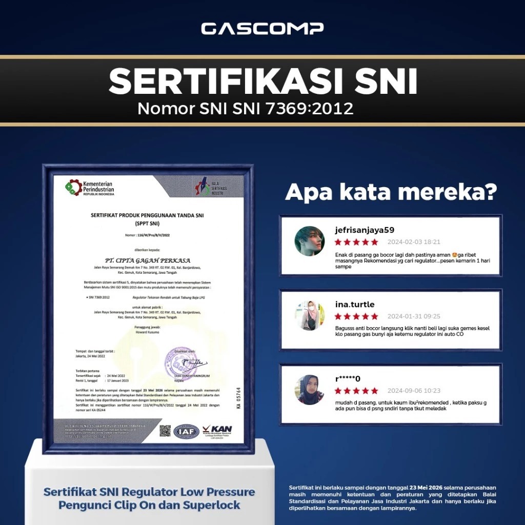 GASCOMP Paket Regulator Meter + Selang (GRT-924E) Regulator Gas Aman Regulator Gas Anti Bocor Regulator Gas SNI Regulator Gas Terbaik