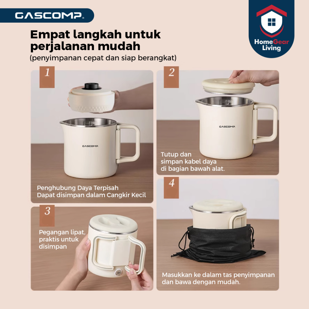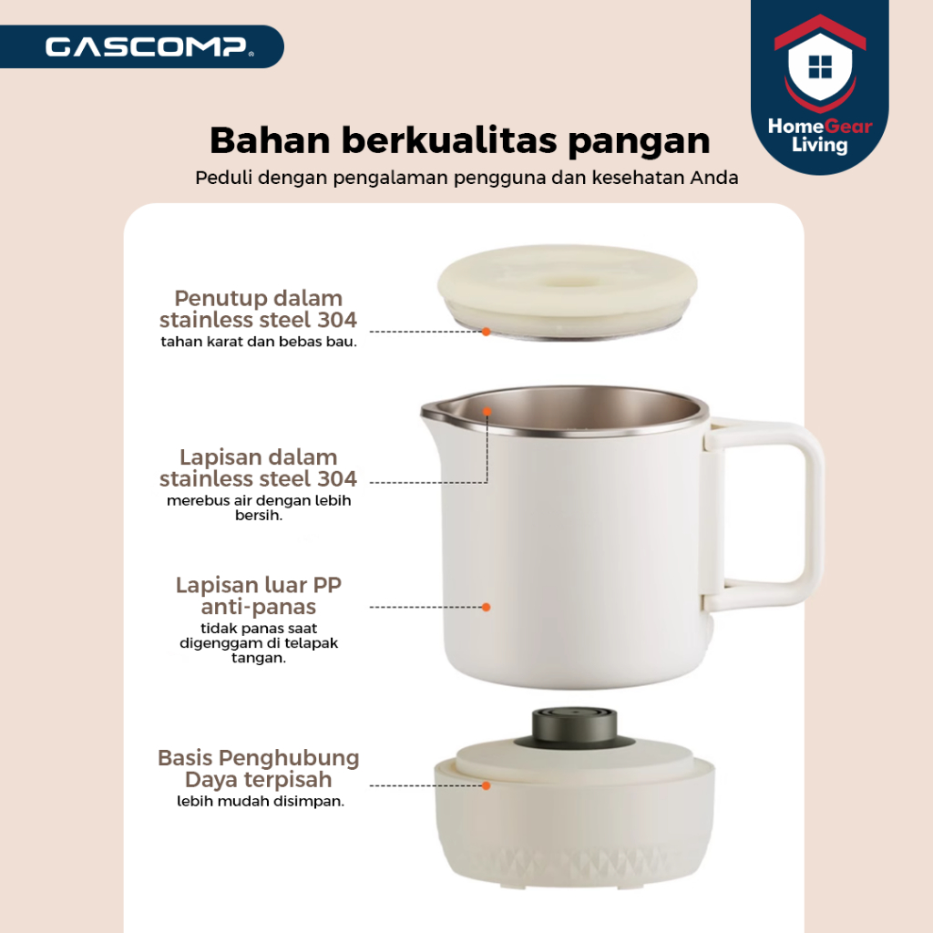 HOMEGEAR Panci Listrik Porrtable EKEP 01 Panci Listrik Serbaguna 0.8L Multifungsi Stainless Panci Elektrik Anti Lengket dengan Lapisan Almunium Anti Lengket Multi Purpose Electric Cooker Pengaturan Suhu Memasak Mengukus Menumis Merebus Mengkukus
