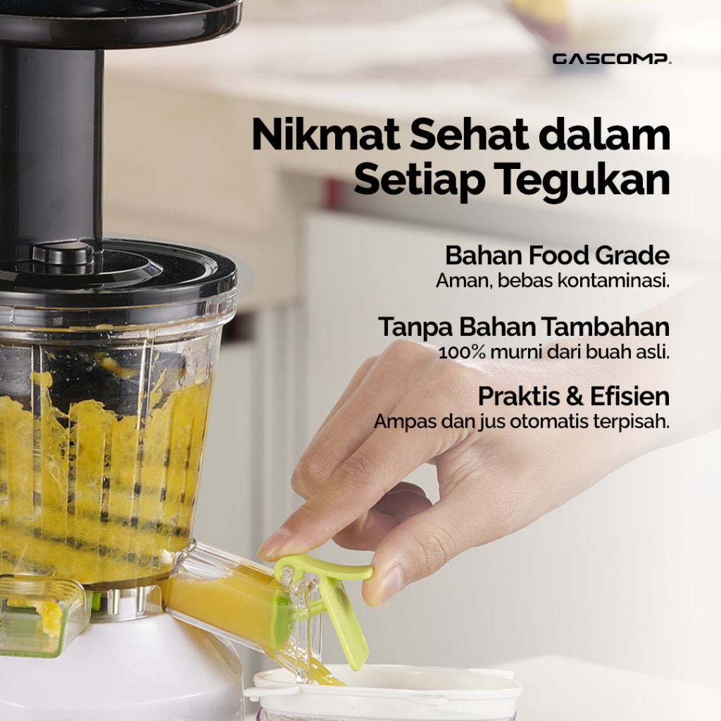 GASCOMP Slow Juicer EBSJ-02 | Juicer Cold Press 0.8L, 100W, Extra Wide Mouth 103mm, Jus Jernih, Ampas Kering, Easy Clean, Garansi 1 Tahun