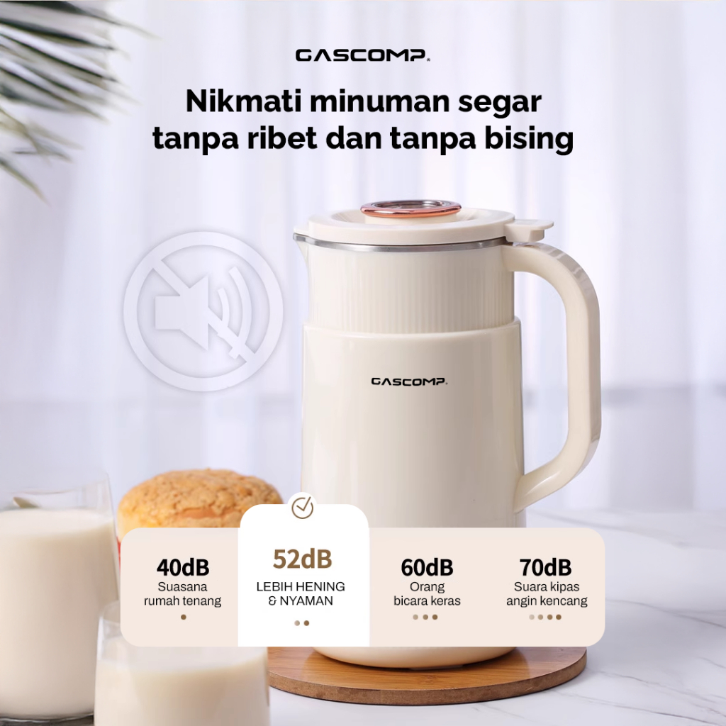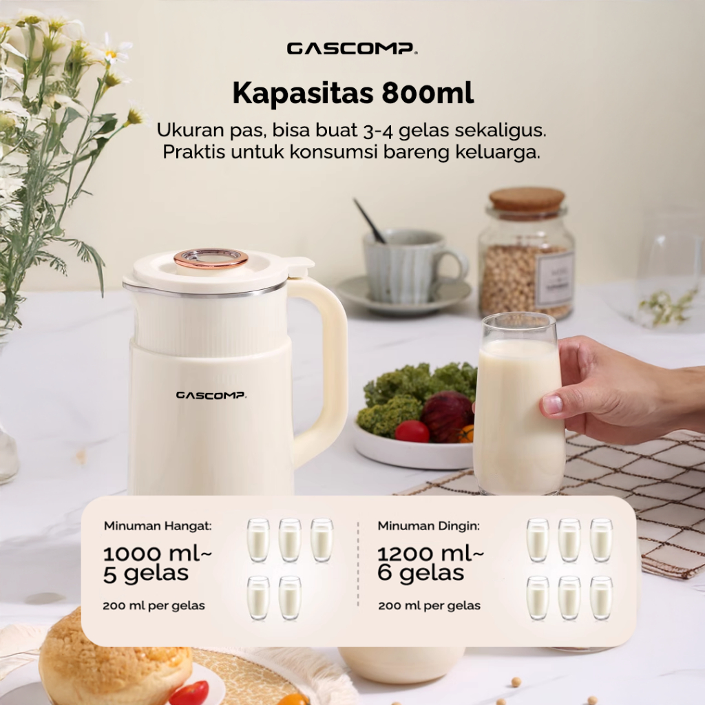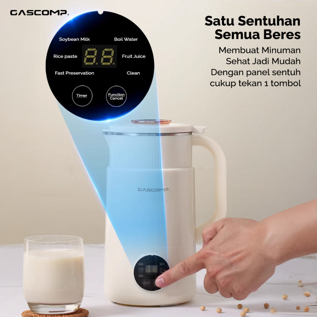 GASCOMP Digital Soy milk Maker 800ml Suara Halus Korean Style 6 in 1 - 250W Hemat Listrik | Mesin Multifungsi Pembuat Susu Kacang Kedelai tanpa Disaring + 8 Mata Pisau Stainless (EKSM-01)