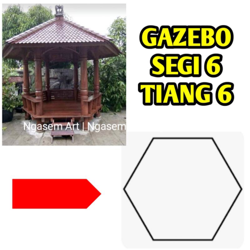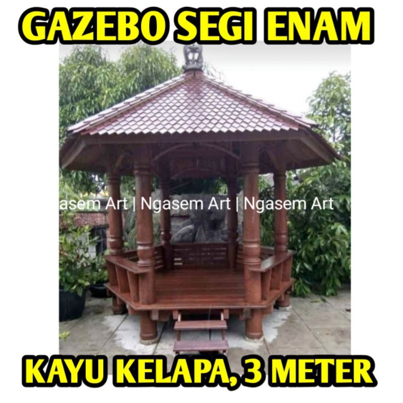 GASEBO SEGI ENAM 3 METER | GAZEBO SEGI 6 KAYU KELAPA