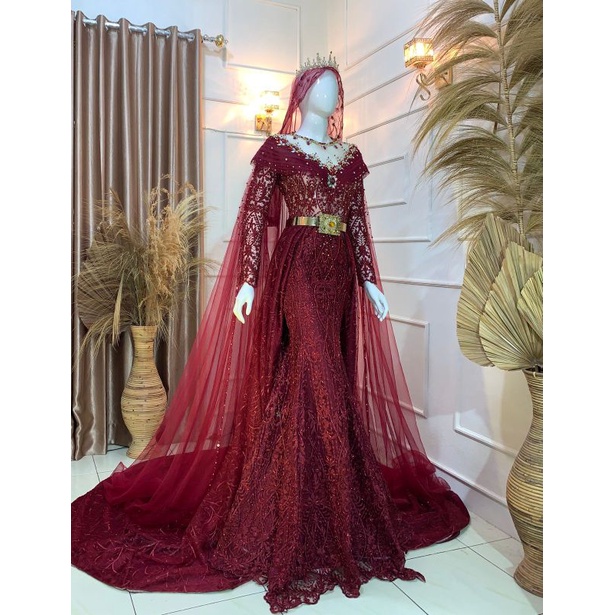 GAUN PENGANTIN SLIM DRESSS/GAUN PENGANTIN MUSLIMAH BEREKOR/GAUN WEDDING /BAJU PENGANTIN MODERN