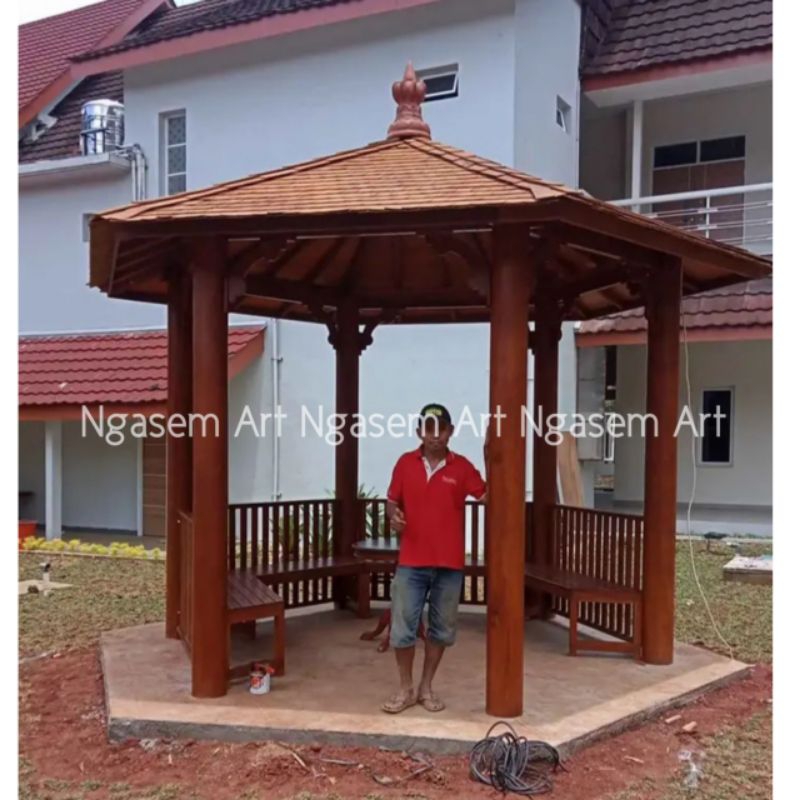 GAZEBO SEGI ENAM BANGKU | GASEBO SEGI 6 DIAMETER 3 M