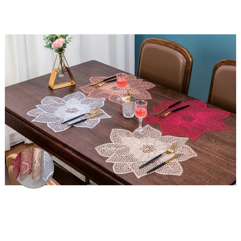 GDT-003 Alas Tatakan Piring Waterproof PVC Motif Bunga High Quality - Taplak Gelas Piring Meja Makan Anti Slip Serbaguna