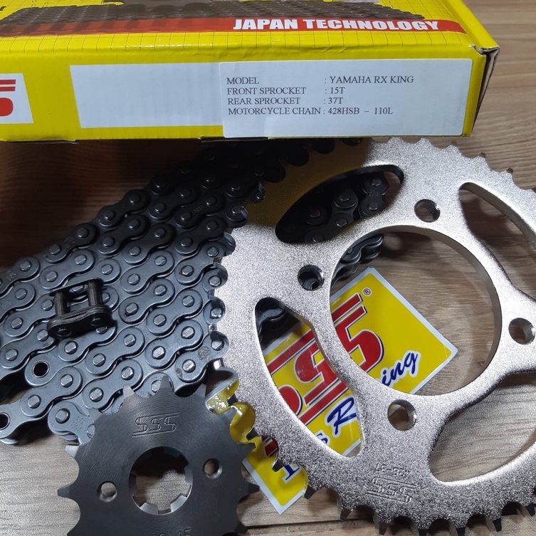 GEAR / GIR SET COMPLITE SSS YAMAHA RX-KING UKURAN STANDART MOTOR GEAR DEPAN 15T , GEAR BELAKANG 37T RANTAI 428-110L HSB SSS ORIGINAL