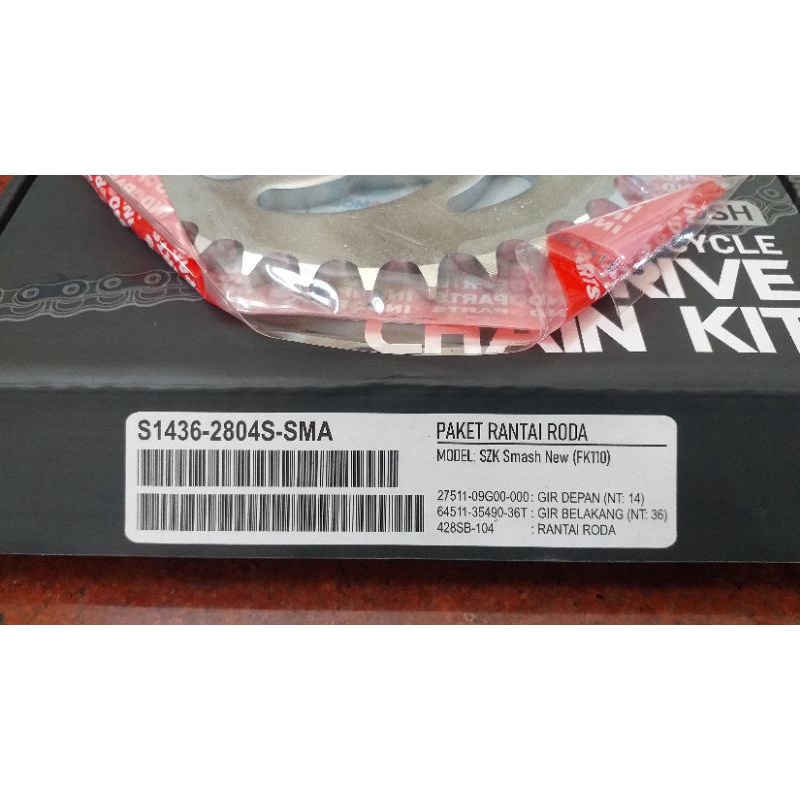 GEAR SET SUZUKI SMASH NEW FK110 MERK INDOPARTS / S1436-2804S-SMA / GEAR PAKET + RANTAI