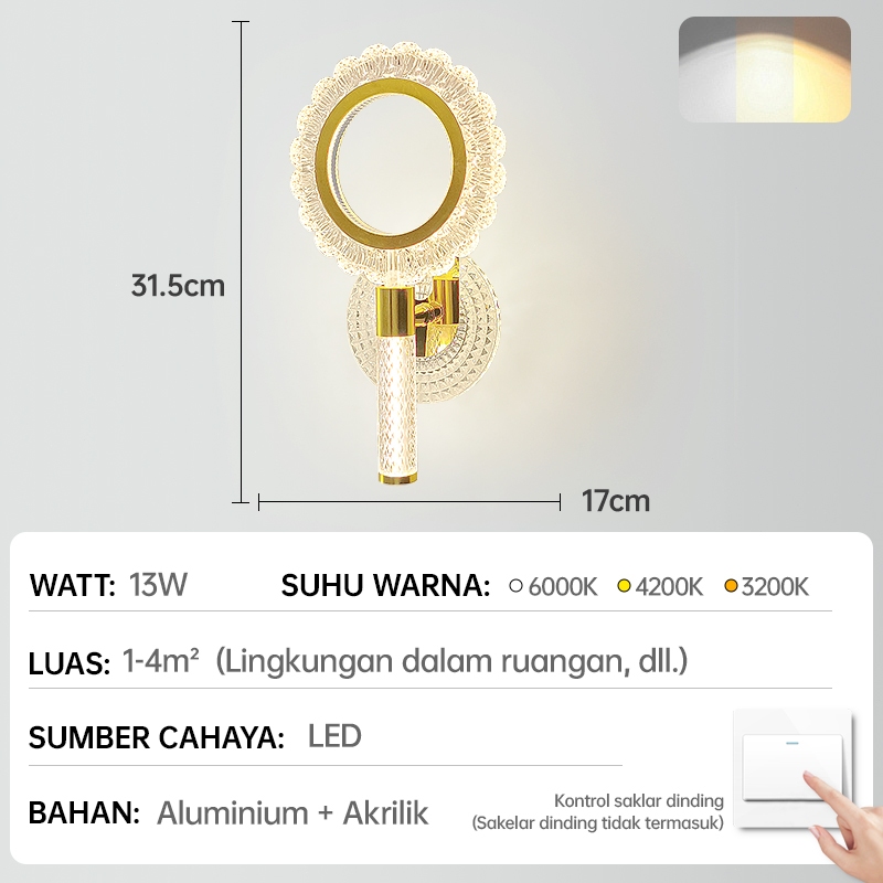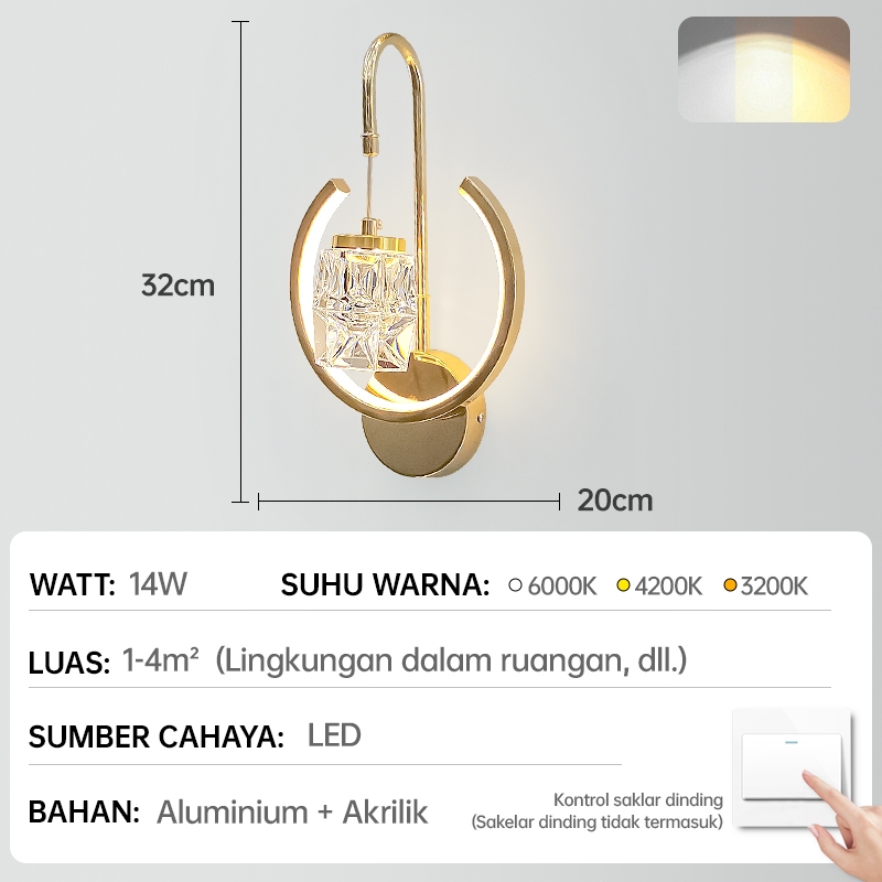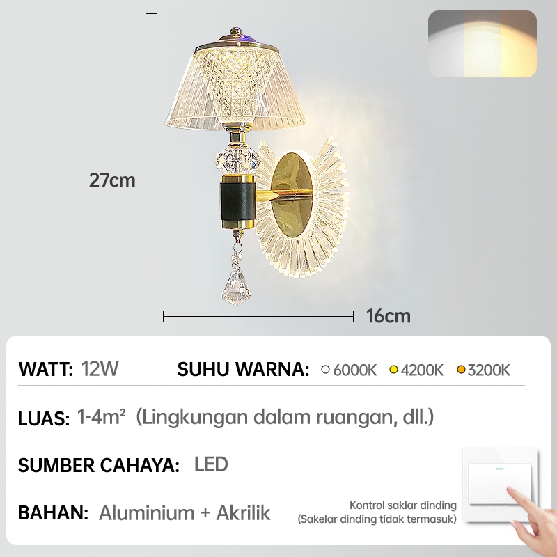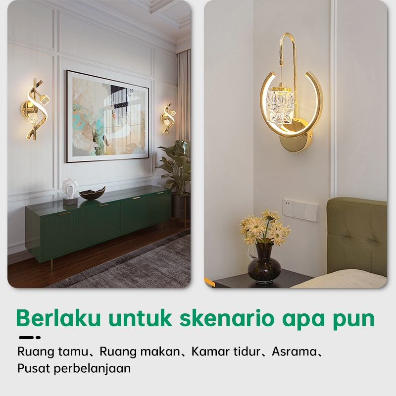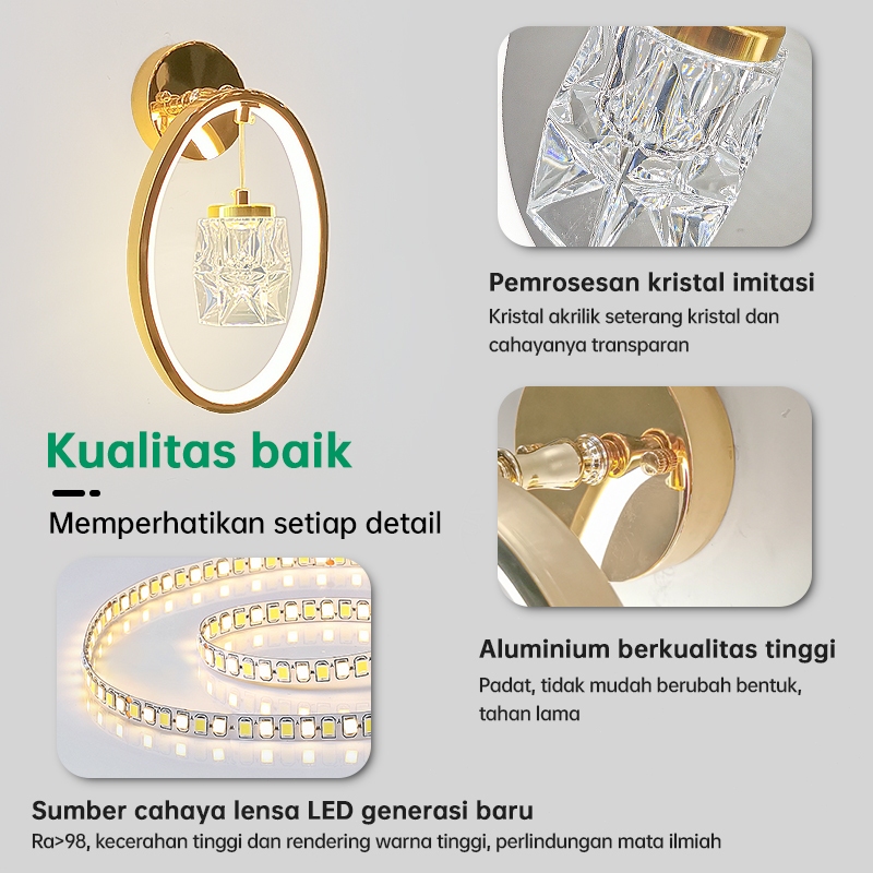 GEJIESE Lampu Dinding Outdoor Kristal Mewah Hias minimalis Ruang Tamu Lampu Tidur Tempel Dinding