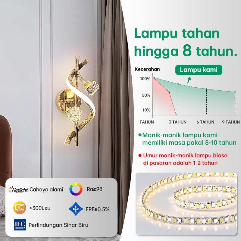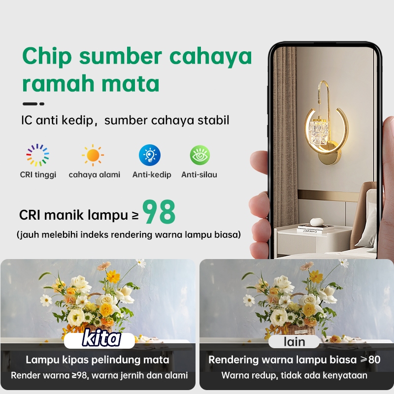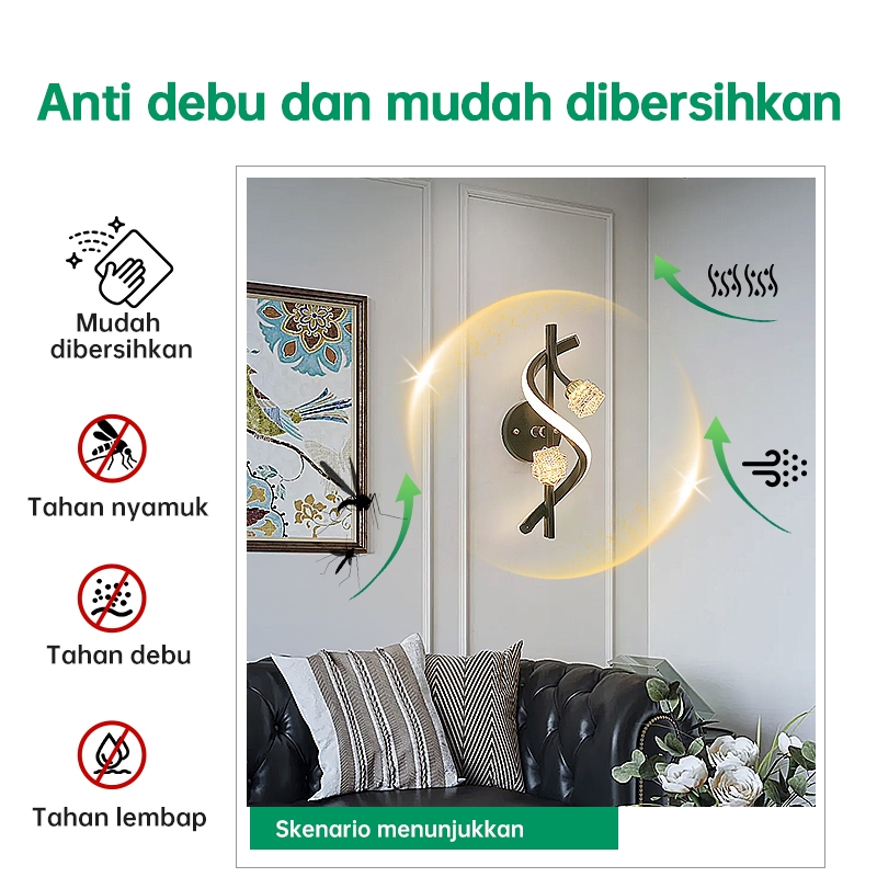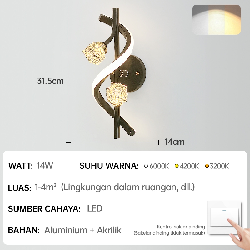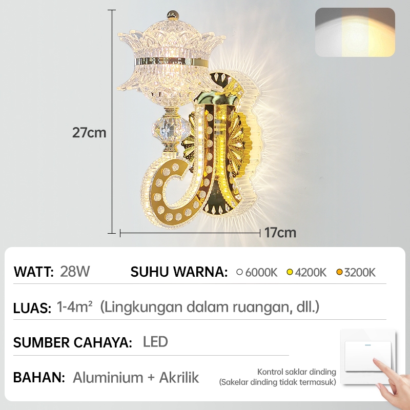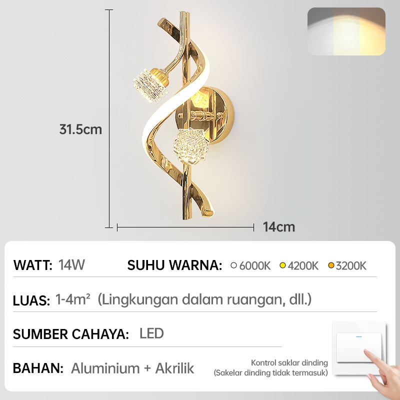 GEJIESE Lampu Dinding Outdoor Kristal Mewah Hias minimalis Ruang Tamu Lampu Tidur Tempel Dinding