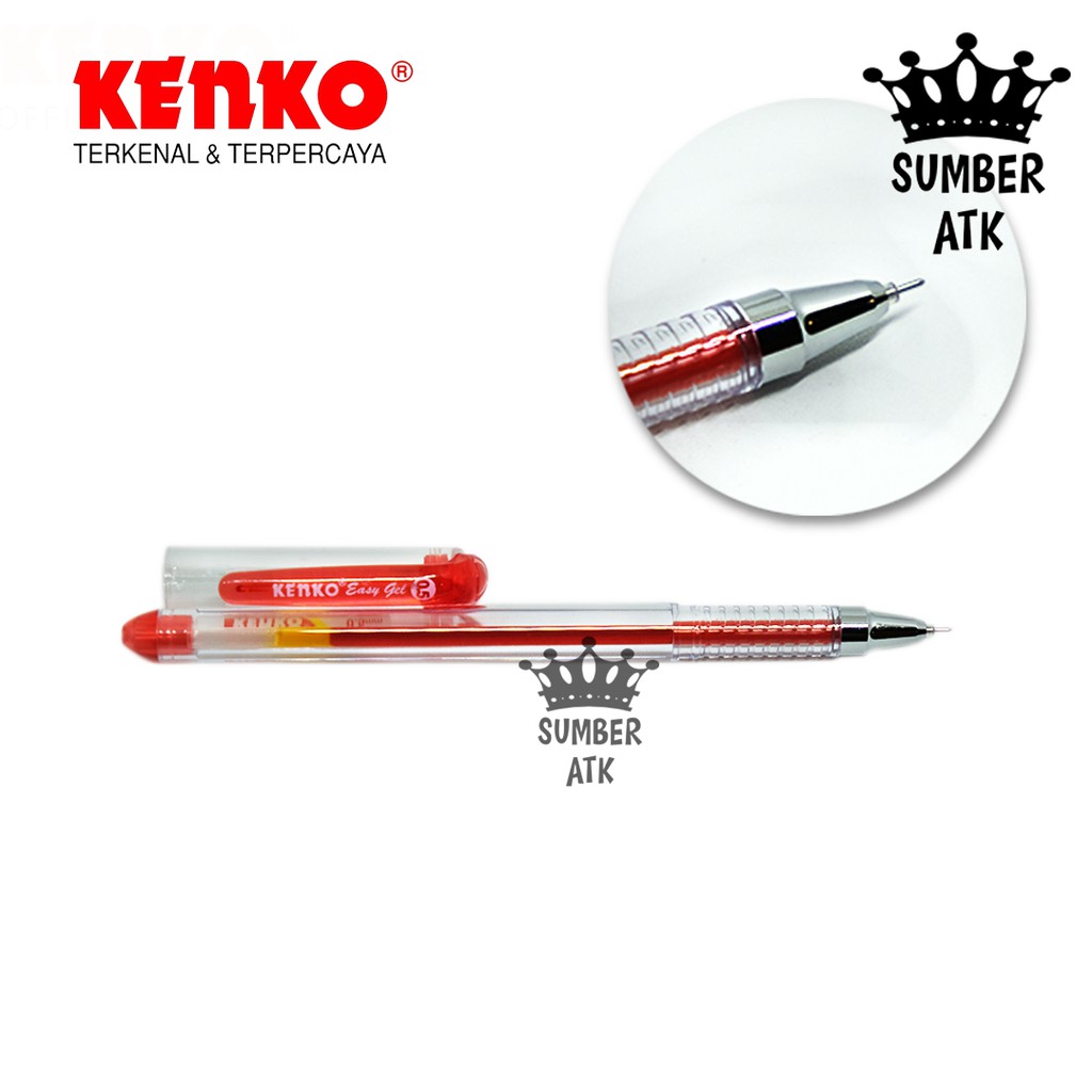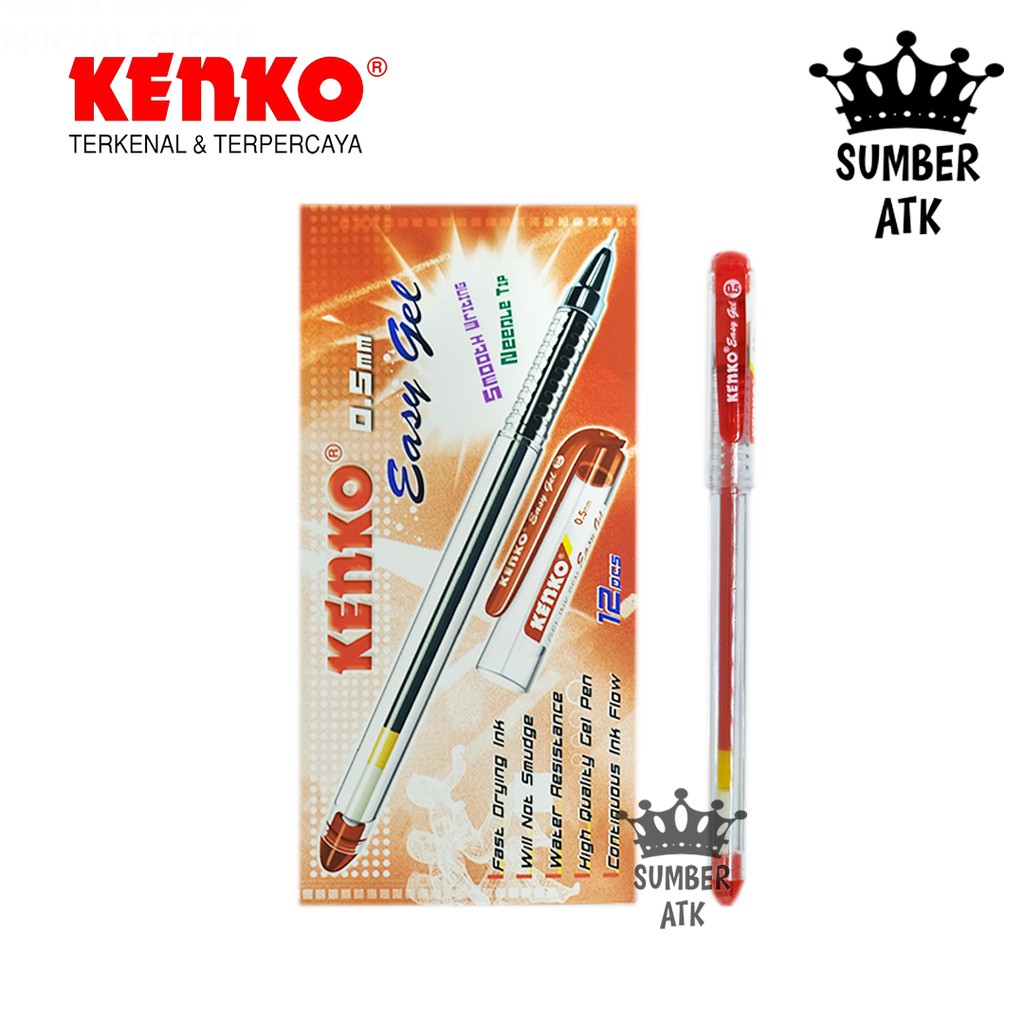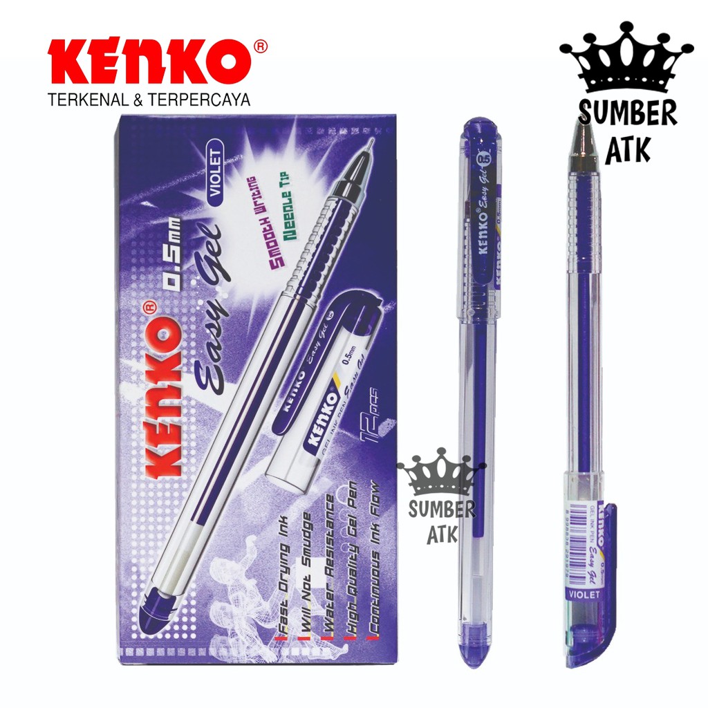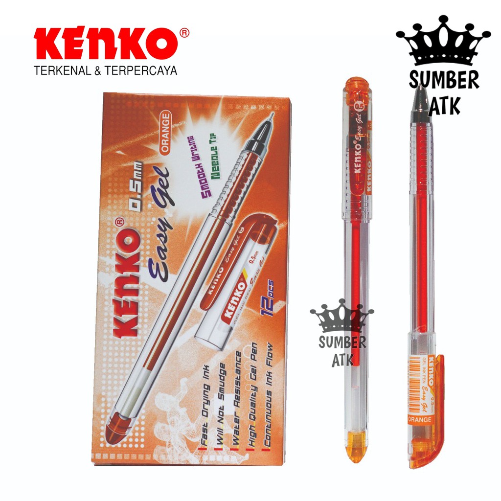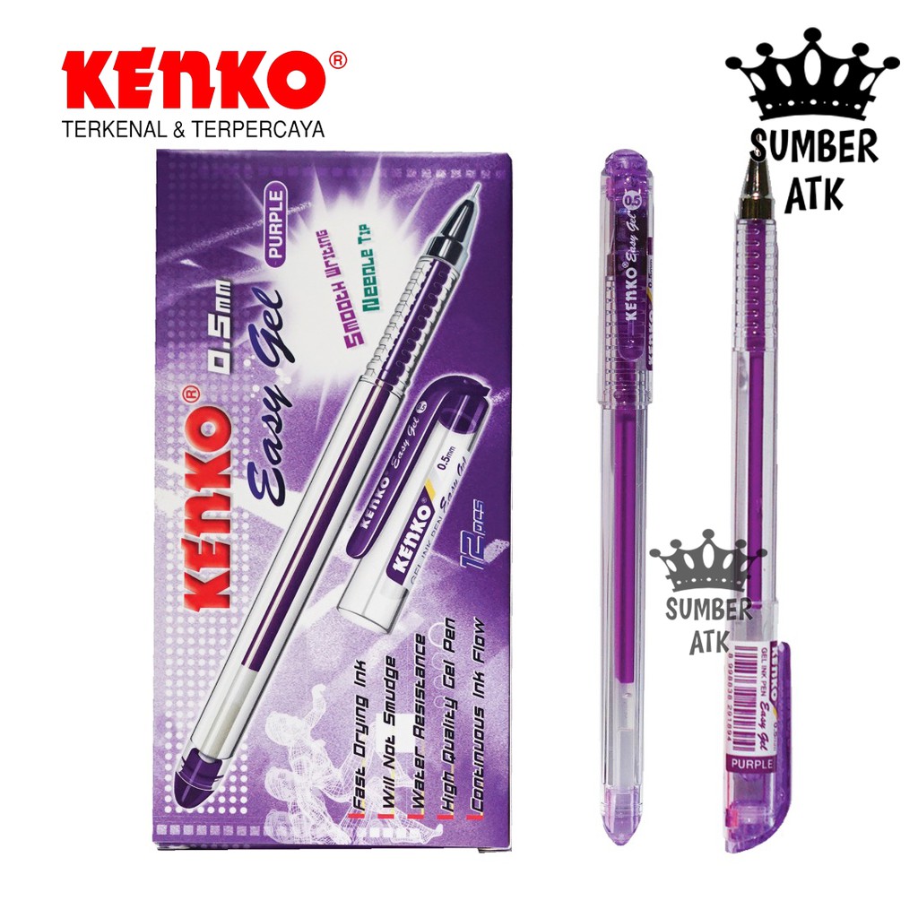 GEL PEN Easy Gel 0.5 mm KENKO Pulpen Hitam , Biru , Merah , Orange , Violet , Green , Pink , Purple