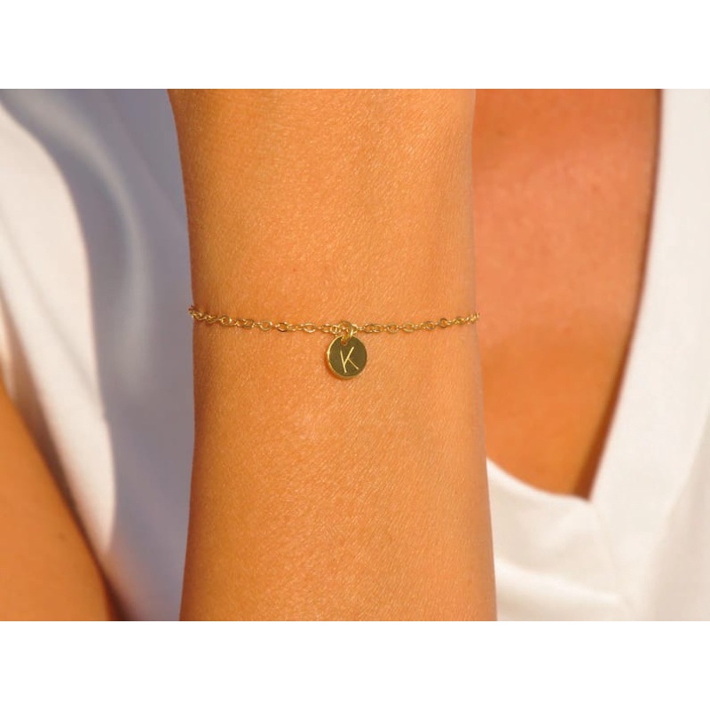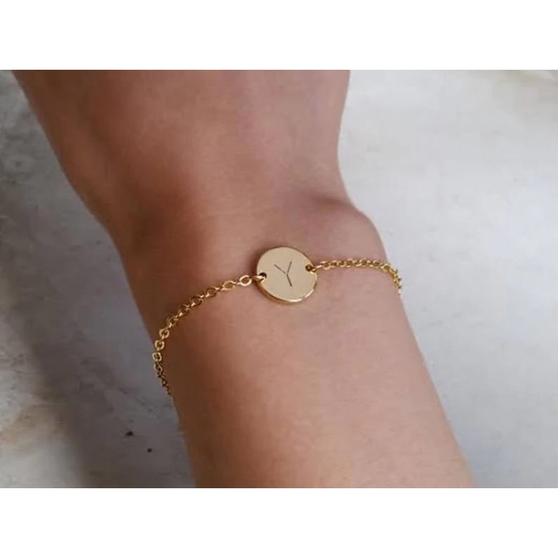 GELANG BRACELET RANTAI ENGRAVE GRAFIR CUSTOM INISIAL HURUF NAMA LOGO TITANIUM LAPIS EMAS ASLI WANITA