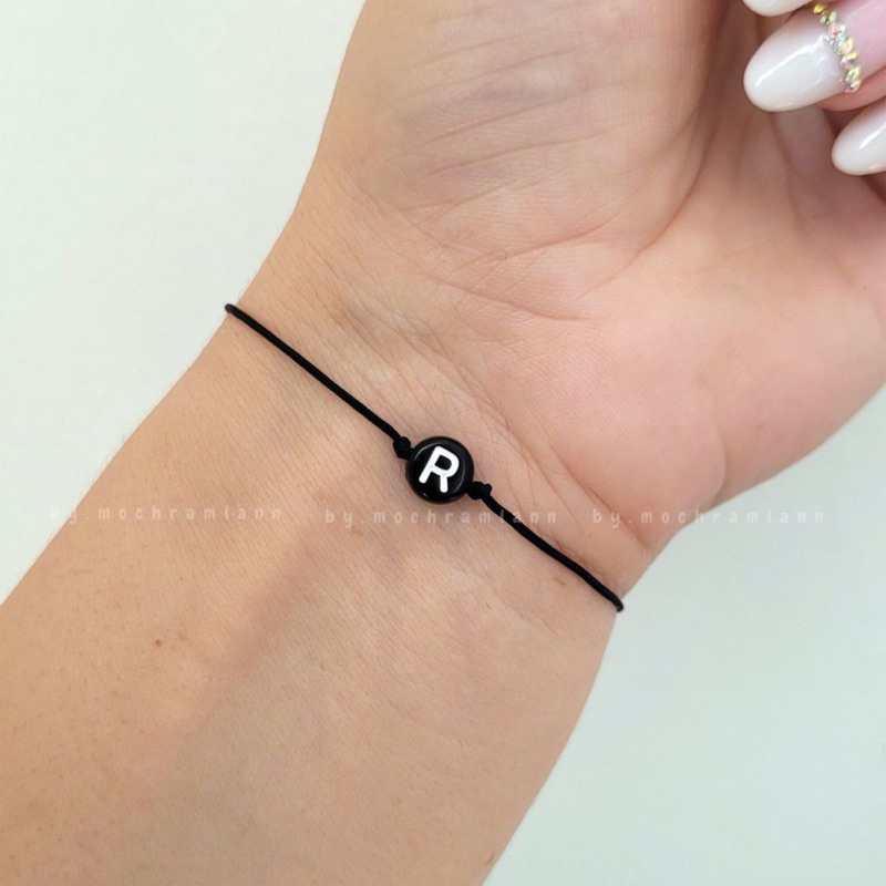 GELANG INISIAL BULAT HITAM MODEL TALI SERUT | BISA PILIH HURUF | GELANG TALI | GELANG HURUF | GELANG COUPLE