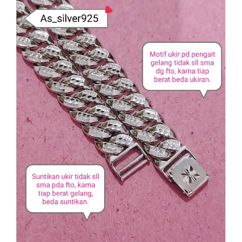 GELANG PERAK SISIK NAGA UKIR PRIA WANITA ASLI SILVER 925 LAPIS MAS PUTIH - GELANG TANGAN UNISEX