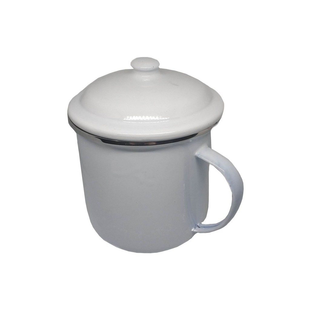 GELAS MUG ENAMEL TUTUP PUTIH 10 CM