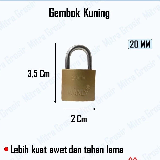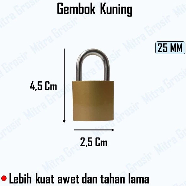 GEMBOK ANTI KARAT / Pintu / Rantai / Pagar 3 Kunci Silver Satin / Koper 20mm/25mm Panjang Pendek