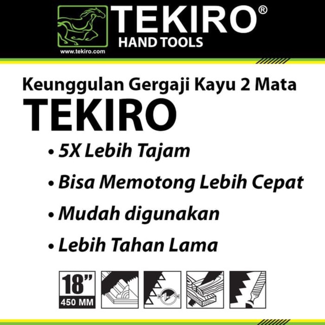 GERGAJI KAYU 18 INCH TEKIRO 2 MATA GERGAJI TANGAN GAGANG TPR HAND SAW 2 3 TEETH 20 MATA BESI KARET