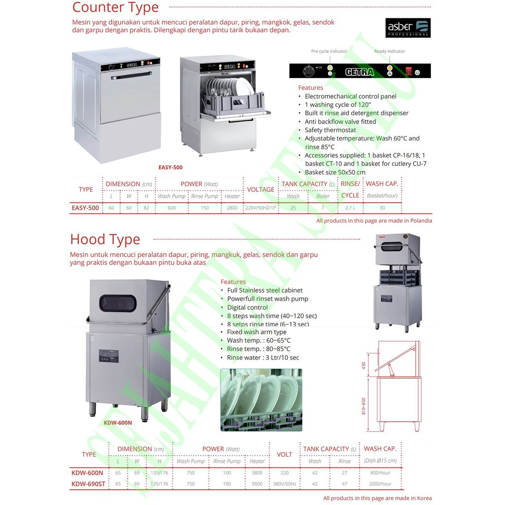GETRA Commercial Dishwasher Hood KDW-690ST Mesin Pencuci Piring Otomatis