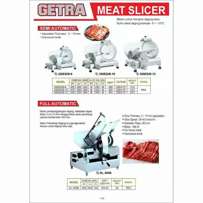 GETRA Mesin Pengiris Daging 220ES meat Slicer Semi Automatic