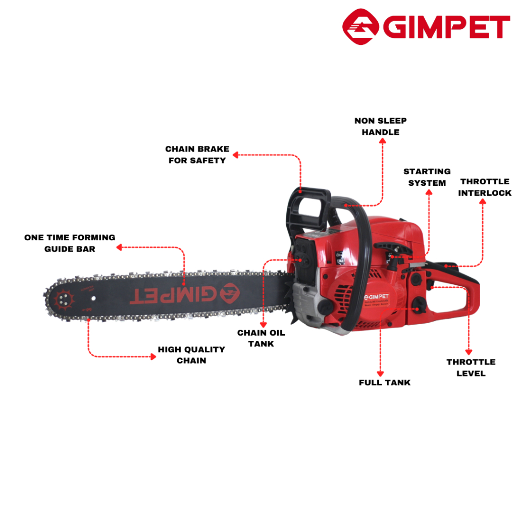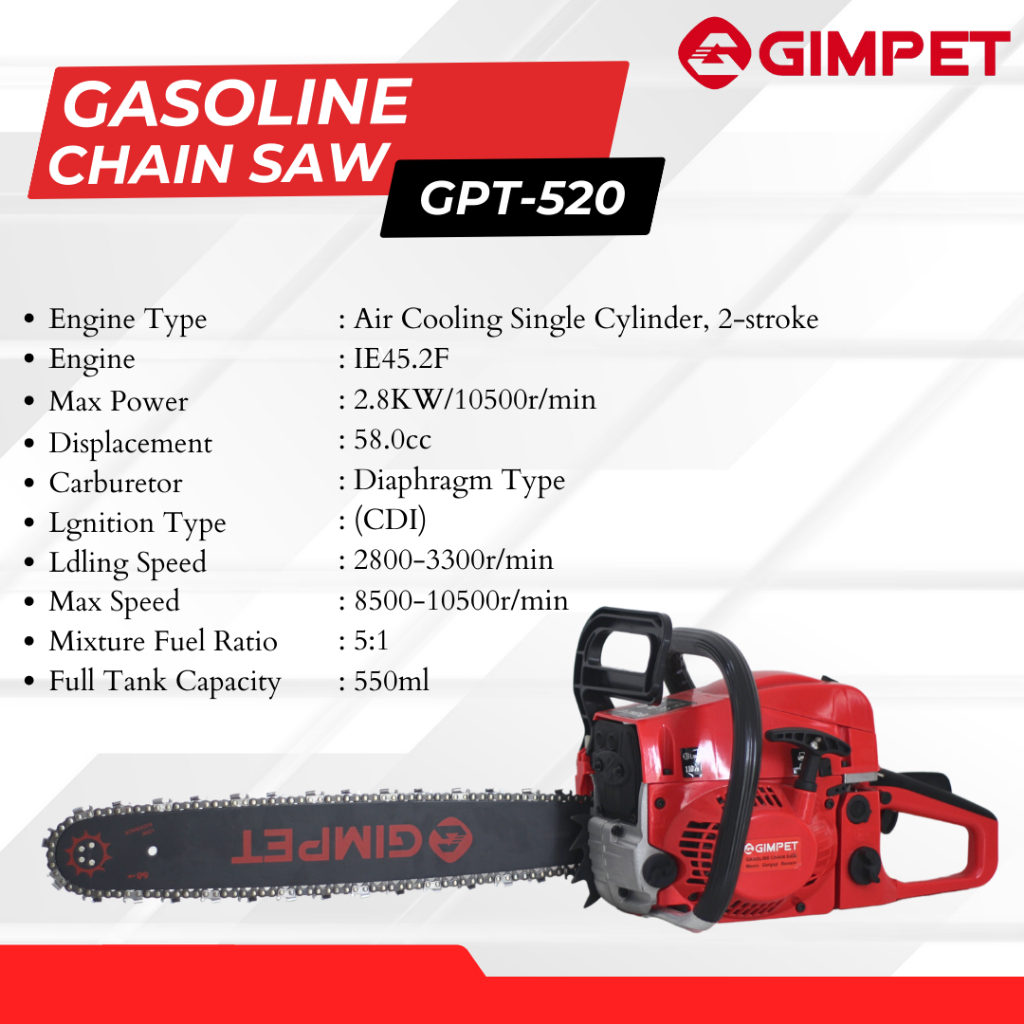 GIMPET Mesin Potong Kayu 58CC Mesin sinso senso Chainsaw 2Tak 22inch Gergaji Potong Pohon Kayu GERGAJI MESIN POTONG KAYU