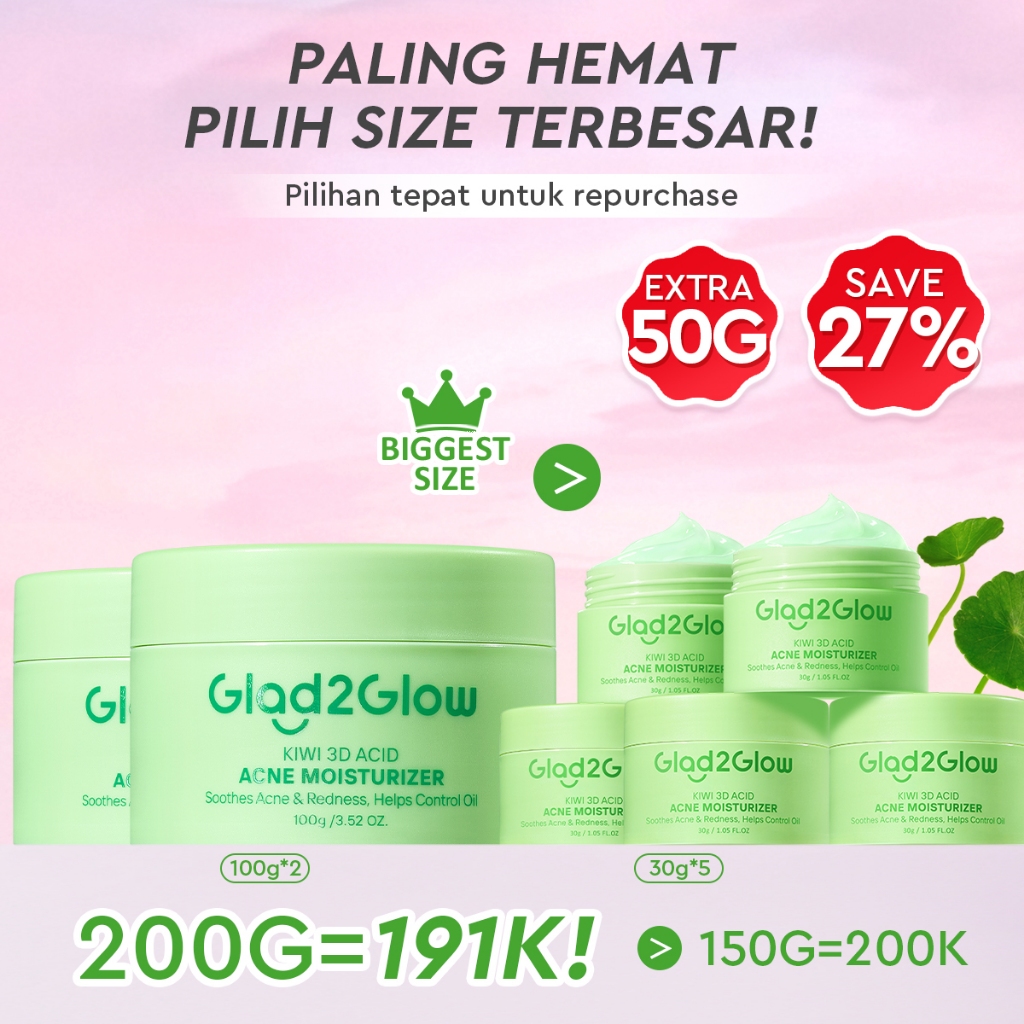 GLAD2GLOW Kiwi 3D Acid Acne Moisturizer Pelembab Wajah Jerawat Mencerahkan Pencerah Wajah&Penuaan Hilangkan Flek & Tenangkan Kulit Skincare Pelembab Esensi Wajah Perawatan Kulit day cream tone up g2g official store