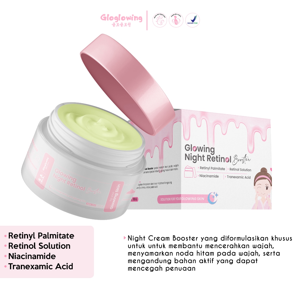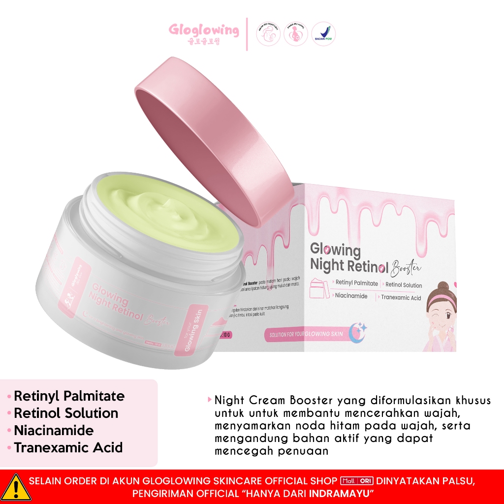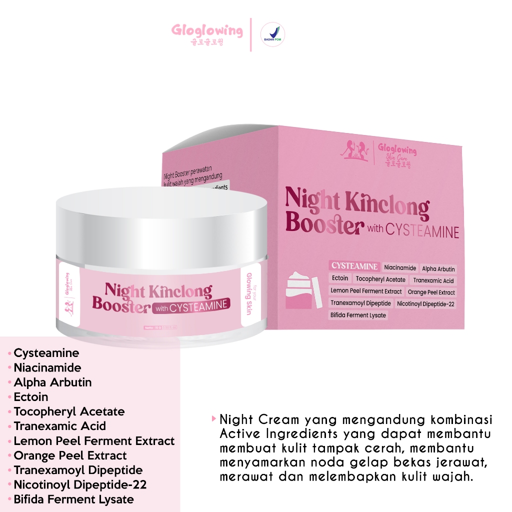 GLOGLOWING Night Cream Whitening - Kinclong Booster / Retinol Booster / Kinclong White Truffle / Kinclong with Cysteamine (Night Cream Wajah Gloglowing Skincare)