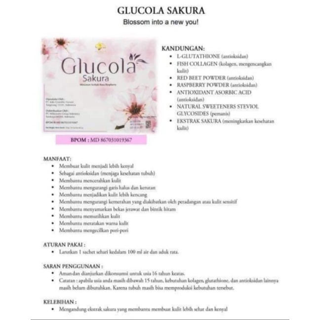 GLUCOLA SAKURA (Minuman Serbuk Rasa Raspberry)
