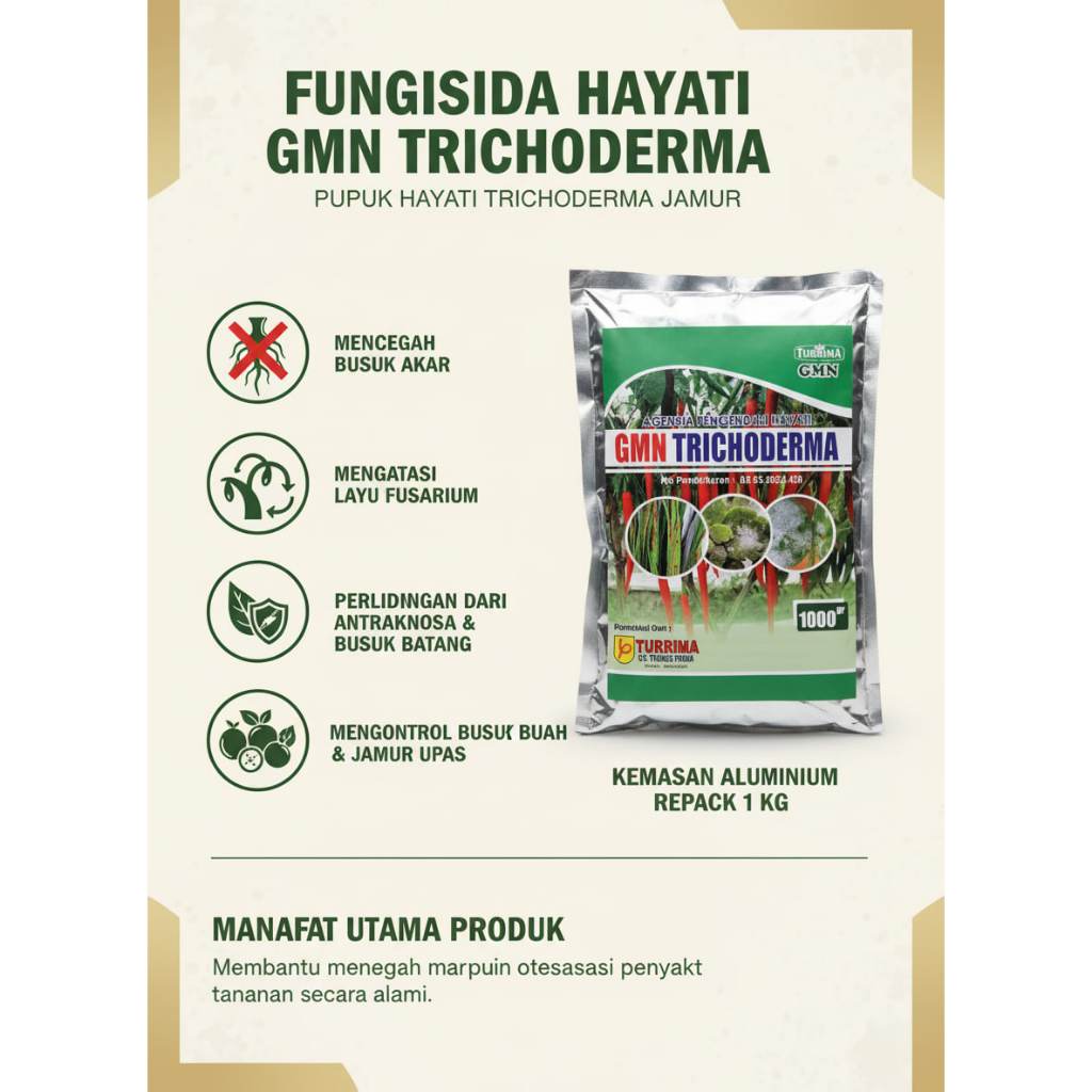 GMN TRICHODERMA Fungisida hayati 1kg, pupuk Tricoderma pencegah Layu Fusarium, Trikoderma Obat patek cabai, Busuk batang & Akar