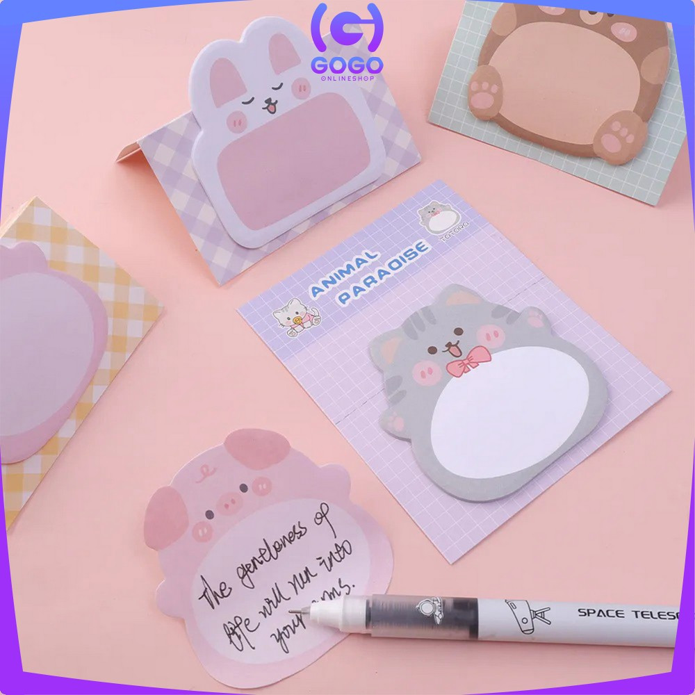 GOGO-A103 Sticky Notes Motif Hewan Isi 20 Lembar / Tempelan Kertas Catatan Memo Mini Sticky Note Animal Lucu Serbaguna