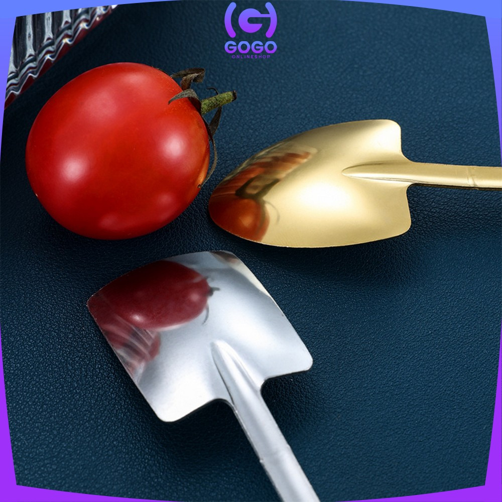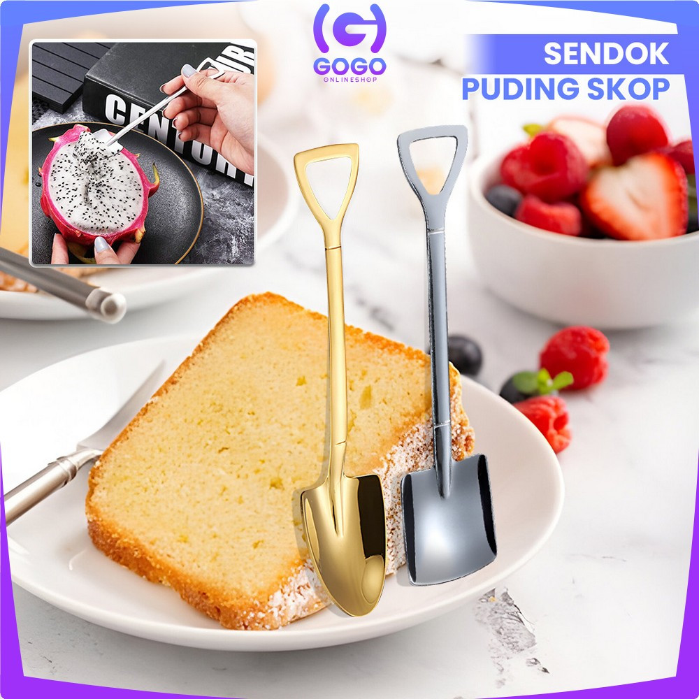 GOGO-C1006 Sendok Dessert Bentuk Sekop Besi Stainless Baja Anti Karat / Sendok Puding Kue Skop Aesthetic Lucu Unik Sendok Sovenir