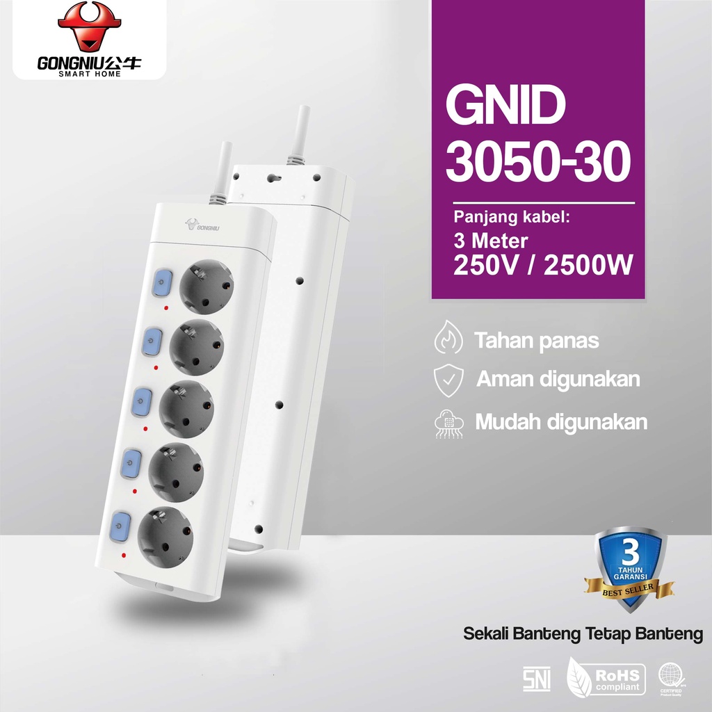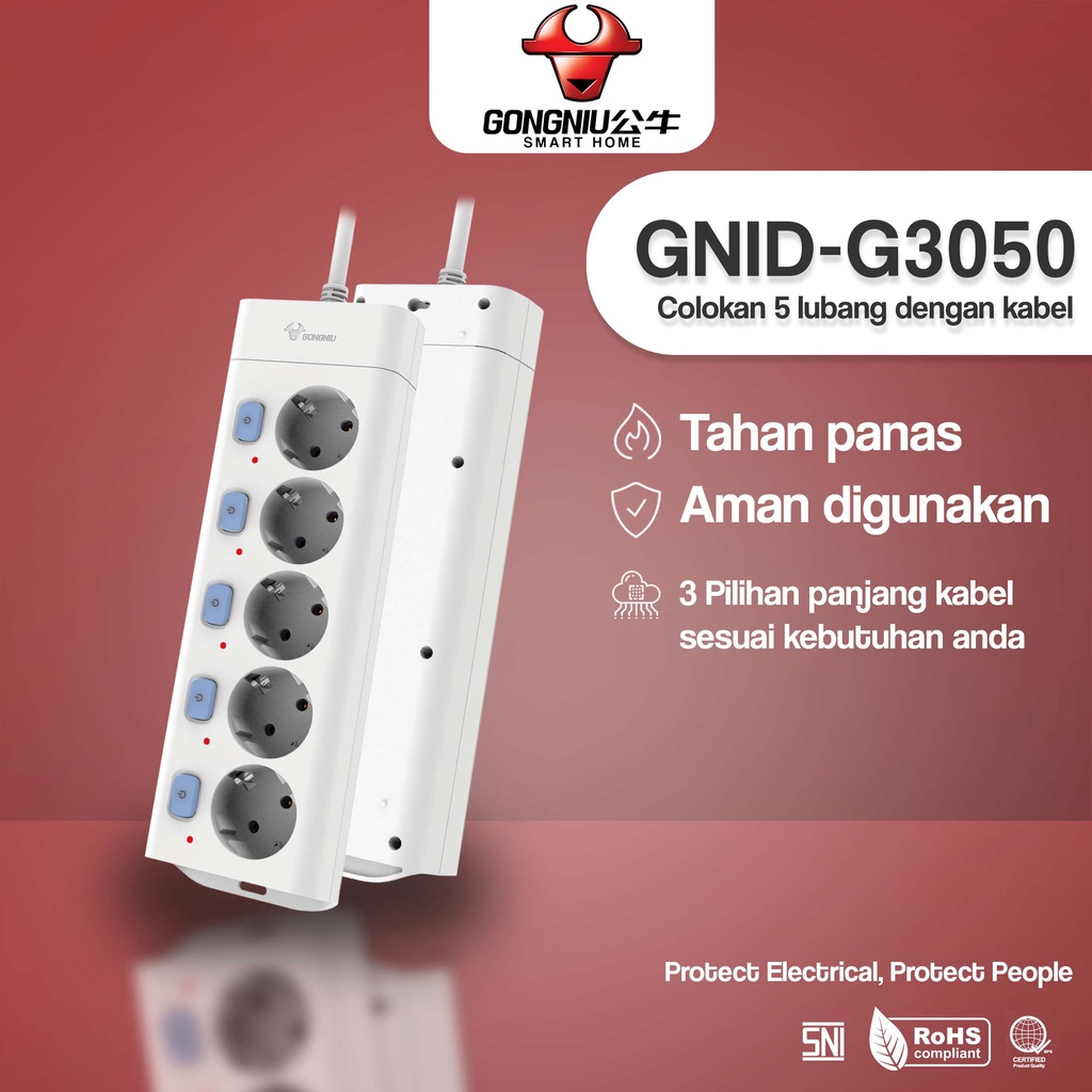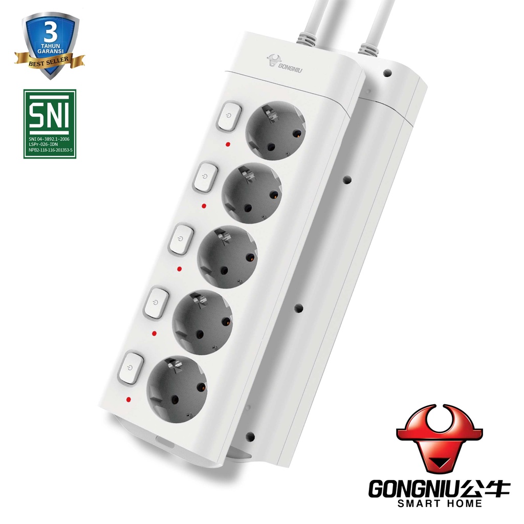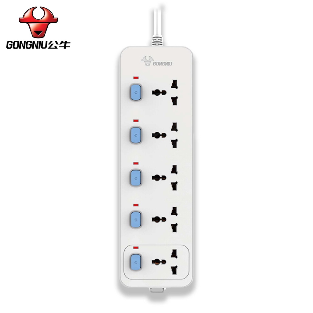 GONGNIU Stop Kontak Kulkas TV Komputer Gaming Dispenser Kipas Angin + Kabel 5 Lubang Saklar Panjang 1,5M - 5M + Kabel dengan 5 Switch /Stop Kontak / Colokan Kabel / Colokan Listrik