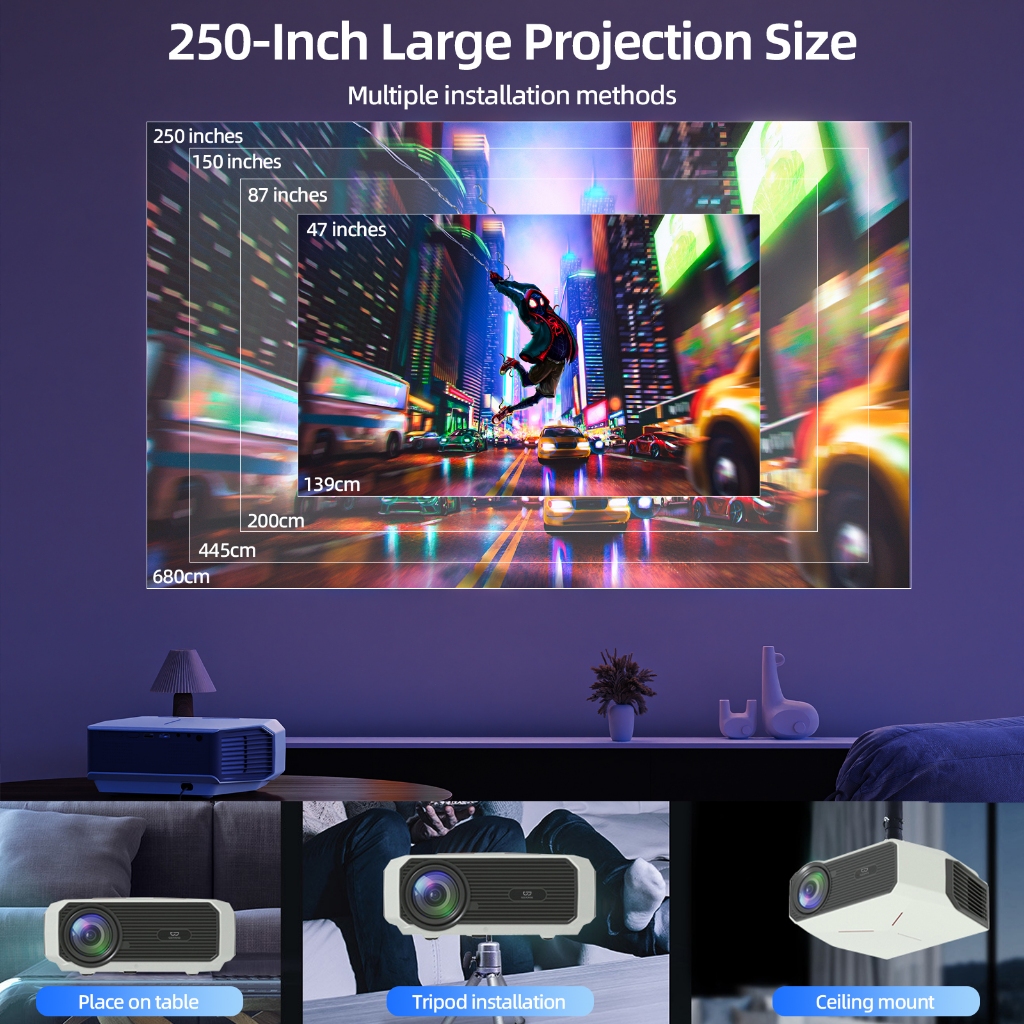 Goojodoq 15500LM Proyektor Profesional Android 8k Wifi Full Hd 1080p Suporta Android Sincronizando a Tela do Smartphone Home Theater Projetor Office Proyektor