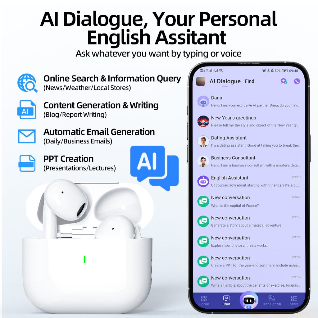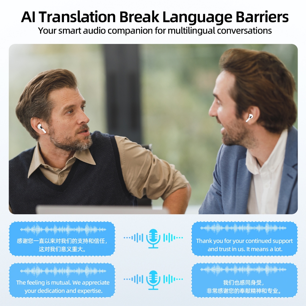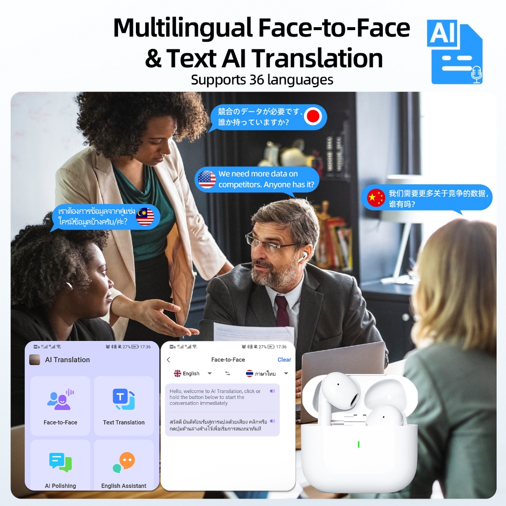 GOOJODOQ Advanced AI Translation TWS Wireless Bluetooth Earphones 5.3 Compact & Portable Support 36 Languages Translation - AI Translation TWS