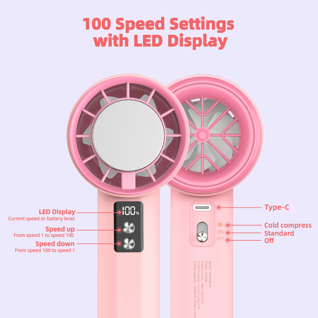 GOOJODOQ GFS006 High-Speed Fan Portable HandHeld Fan Semi Conductor Icy Cool Air Mini kipas Strong Wind 100 Gear Wind Speed kipas angin Digital