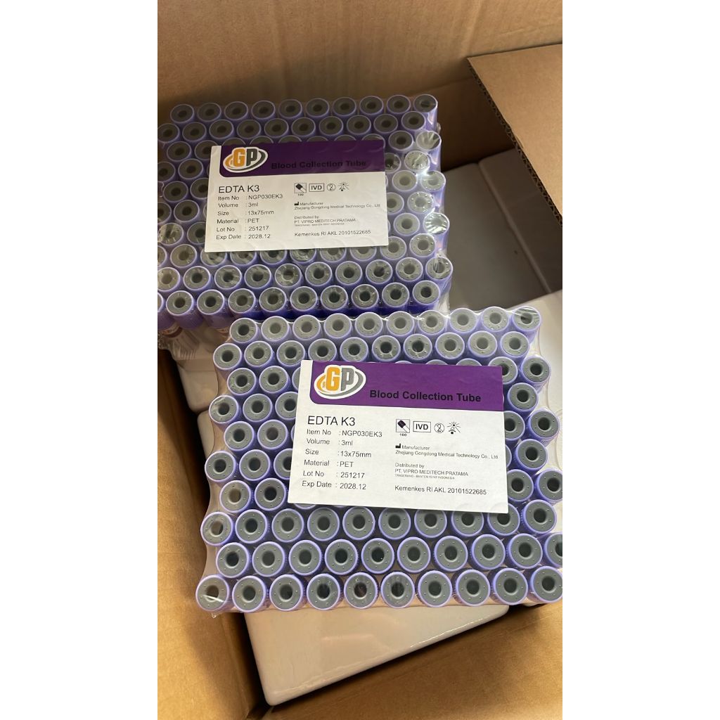 GP Vacum Tube EDTA Glass / Plastik Tube 3ml 13x75mm