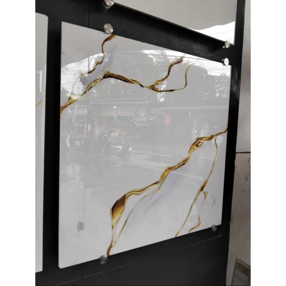 GRANIT LANTAI PUTIH CORAK EMAS UKURAN 60X60 GLAZE POLISHED | ARNA CALIANA GOLD 60X60