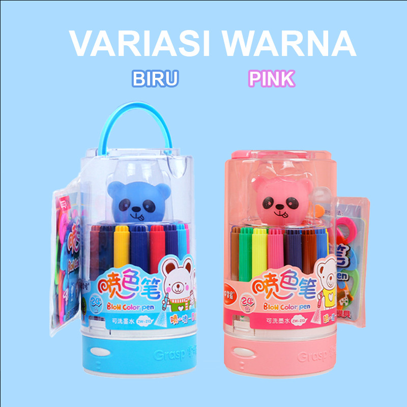 GRASP Felt Pen Blow Pen Semprot 12/24 Spidol Warna Airbrush Marker Anak Mudah Dicuci Tidak Beracun SW002