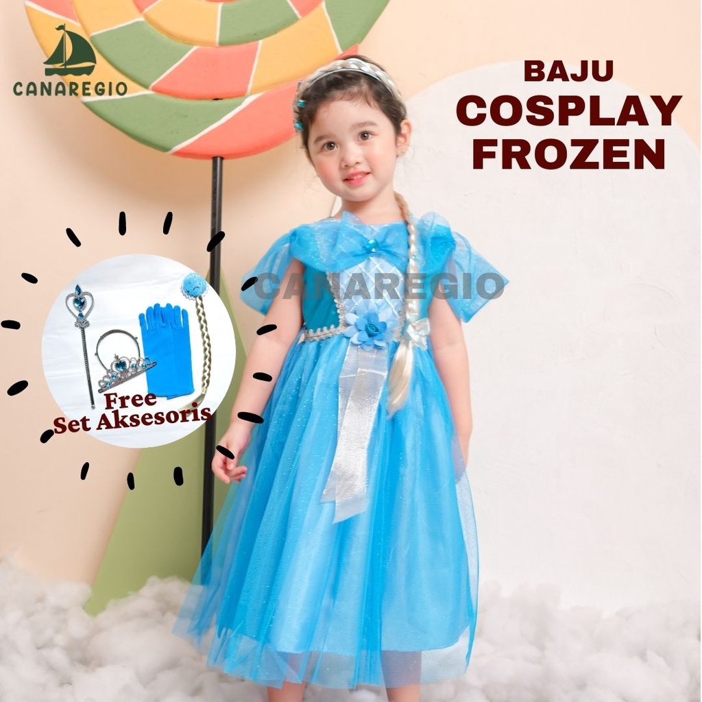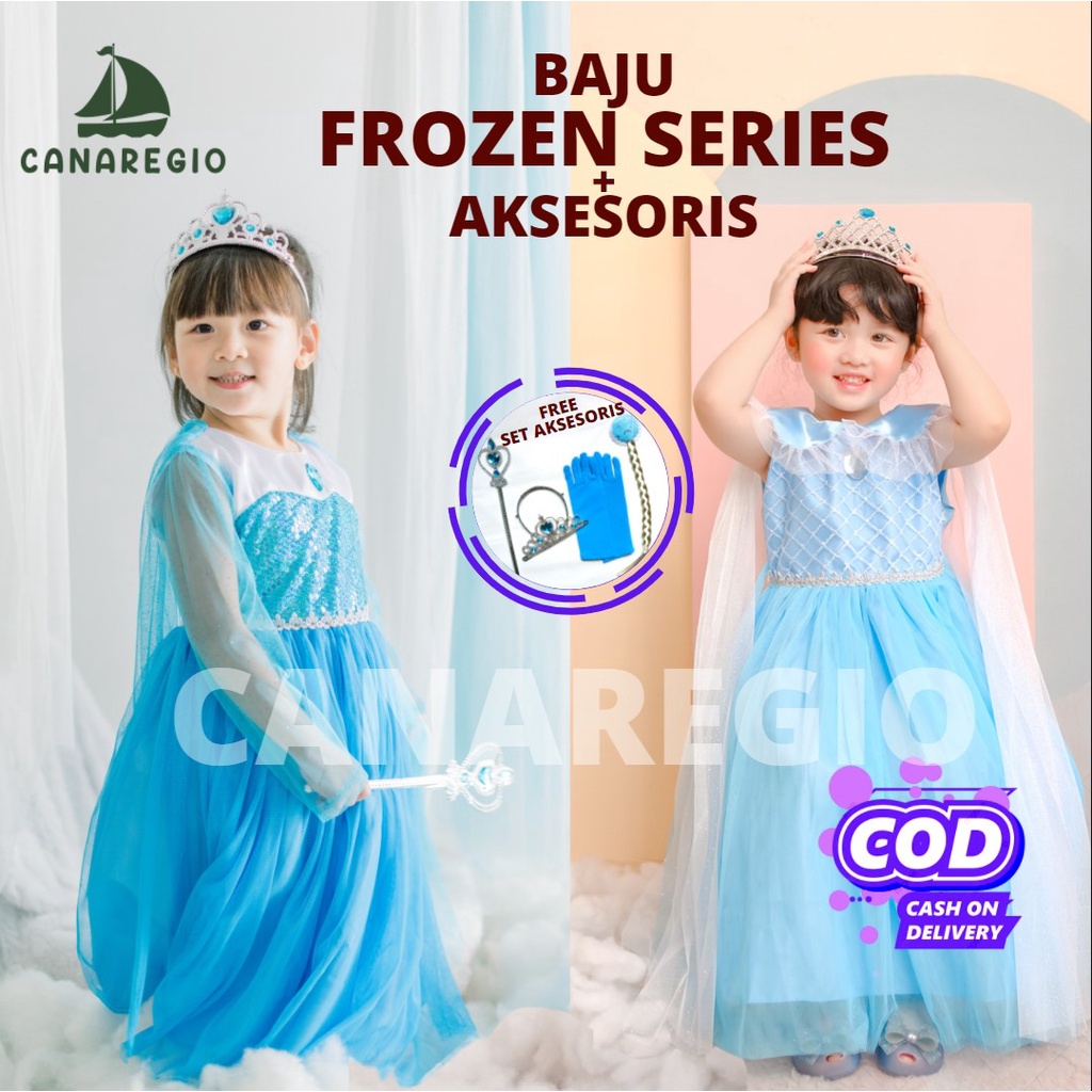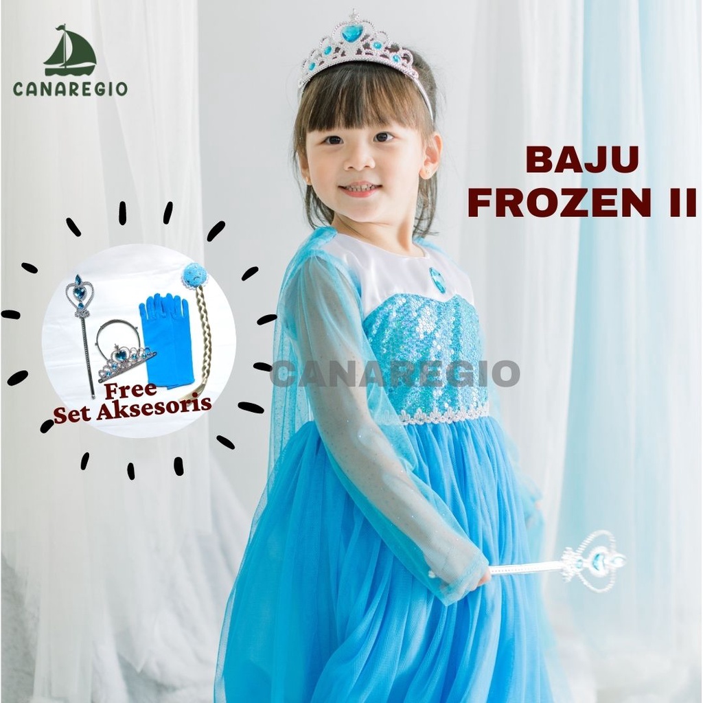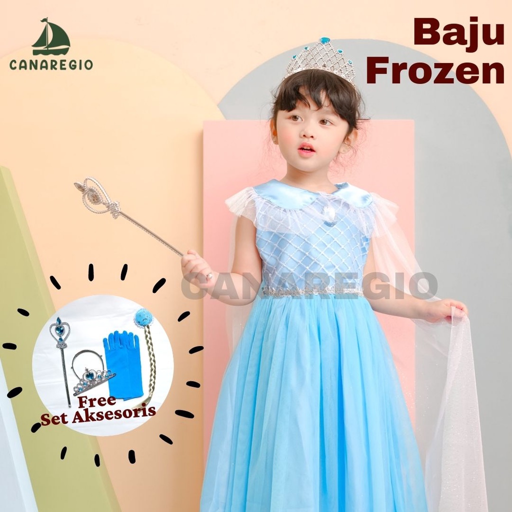 GRATIS AKSESORIS | Set Baju Frozen + Set Aksesoris Mahkota | Gaun Frozen | Baju Frozen | gaun anak perempuan | baju elsa frozen | Frozen Series | Gaun Pesta Anak Perempuan | Set Aksesories Frozen Lengkap 4in1